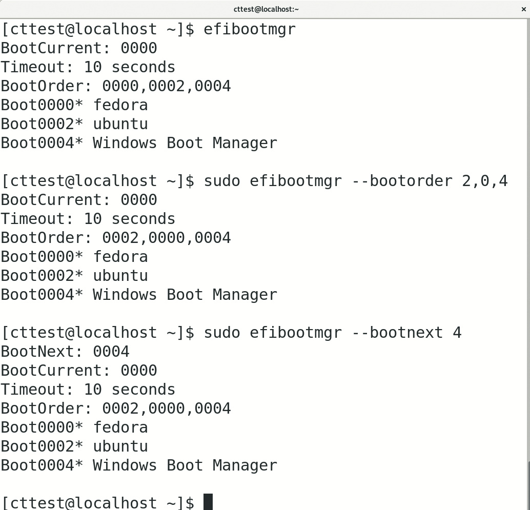 Was nahezu immer klappt, ist die Boot-Reihenfolge von Linux aus zu verändern. Der folgende Befehl sorgt etwa dafür, dass das BIOS zuerst den Boot-Eintrag mit dem Bezeichner 0002 zu starten versucht, aber mit jenem unter 0001 weiter macht, falls das nicht klappt: