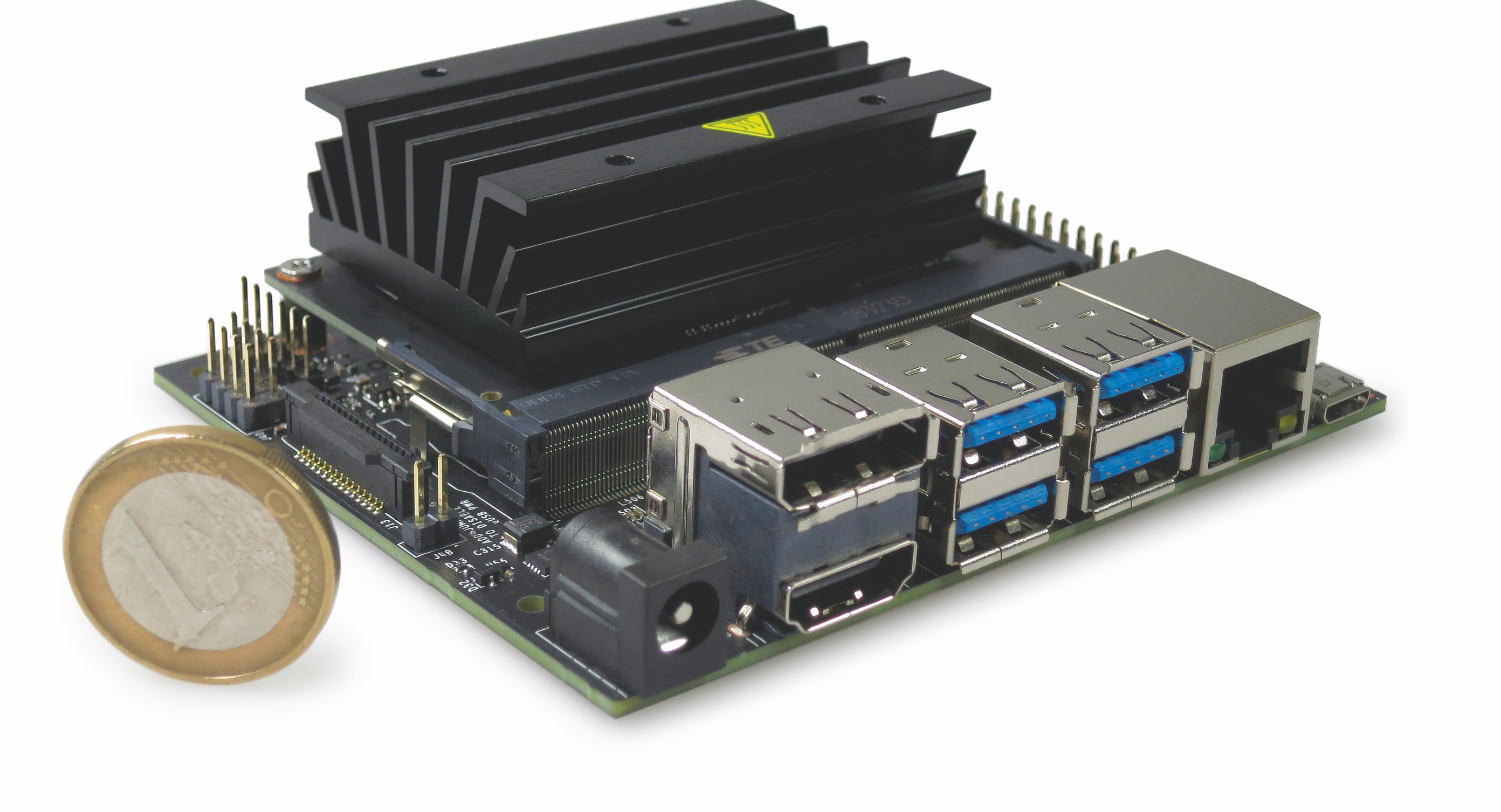 Nvidia liefert schon mehrere Generationen der Einplatinencomputerfamilie Jetson, nun kommt ein Preisbrecher: das Jetson Nano Developer Kit für 99 US-Dollar mit Maxwell-GPU, 4 GByte RAM und schnellen Schnittstellen wie PCI Express, USB 3.0, Gigabit Ethernet, HDMI 2.0 und DisplayPort 1.2. Das System-on-Chip vereint vier ARM-Rechenkerne (Cortex-A57) mit 128 CUDA-Kernen, aber auch Video-Decoder und -Encoder sind enthalten.