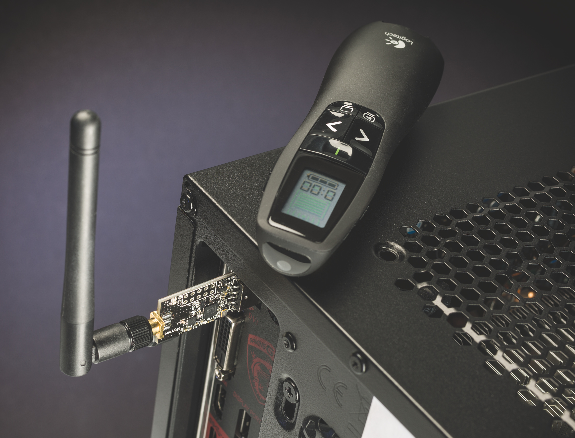 Dieser kleine Funkstick dient eigentlich zur Fernsteuerung von Drohnen. Hacker kapern damit jedoch bevorzugt Funkmäuse und -tastaturen. Auch bei Powerpoint-Vorträgen kann der Stick ordentlich Chaos stiften.
