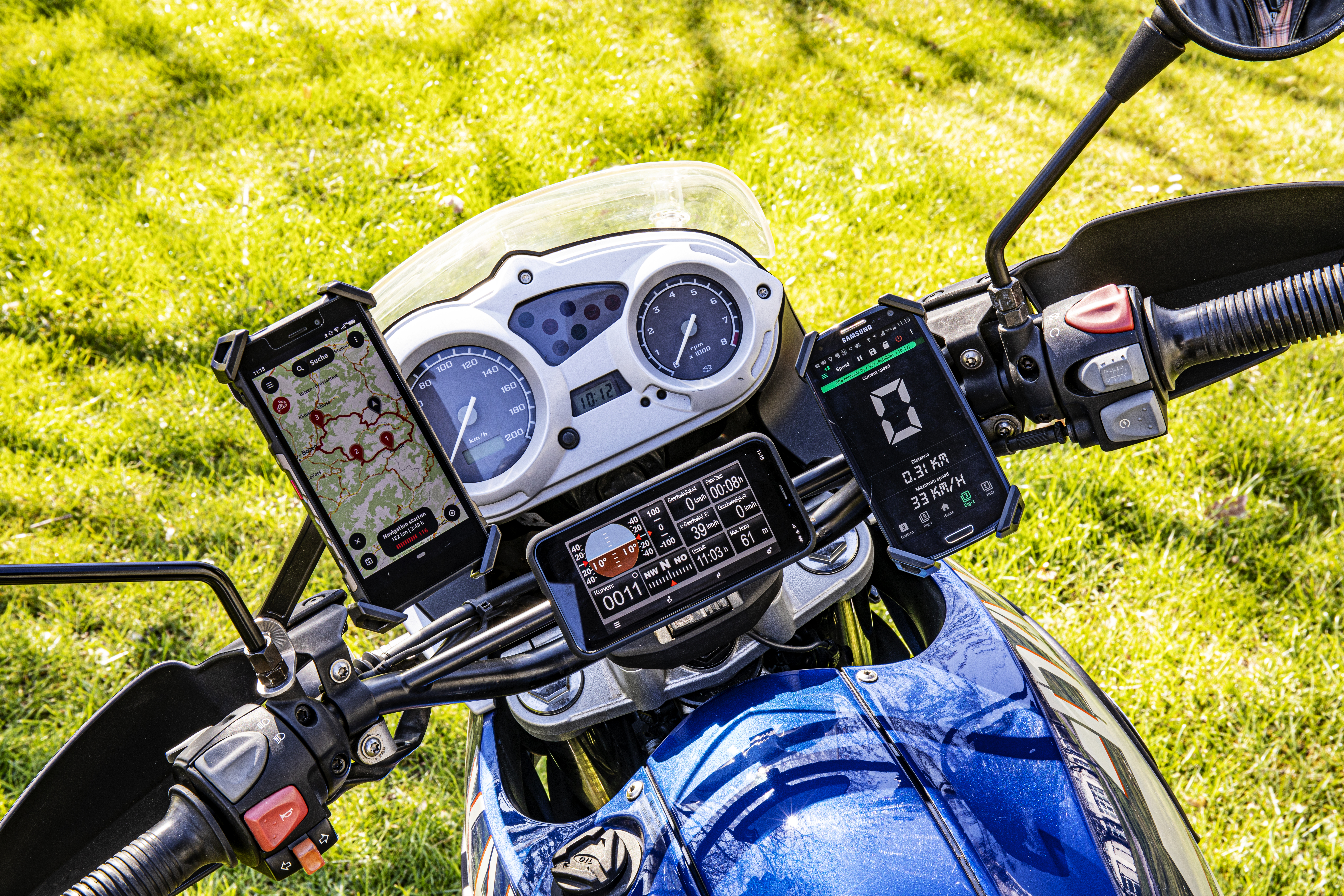 Ob ein Smartphone am Motorrad besser ist als ein spezielles Motorrad-Navigationsgerät wie die TomTom-Rider- und Garmin-zumo-Serien, wird in einschlägigen Foren und auf Motorrad-Stammtischen kontrovers diskutiert. Beide Seiten haben valide Argumente: Motorrad-Navigationsgeräte sind teurer als das ohnehin schon vorhandene Smartphone oder ein günstiges China-Outdoor-Gerät. Dafür sind sie robuster, wasserdicht, stecken zumeist in stabileren Halterungen mit integrierter Stromversorgung und lassen sich dank resistivem Touchscreen auch mit Handschuhen bedienen. Jedoch ist man auf die fest installierte und nicht von jedem geliebte Routensoftware festgelegt. Hier punktet das Smartphone: Es bietet nicht nur die Auswahl zwischen zahlreichen Navigations- und Tourenplanungs-Apps, sondern auch jede Menge anderer nützlicher Programme und eignet sich sogar als digitales Zusatzinstrument.