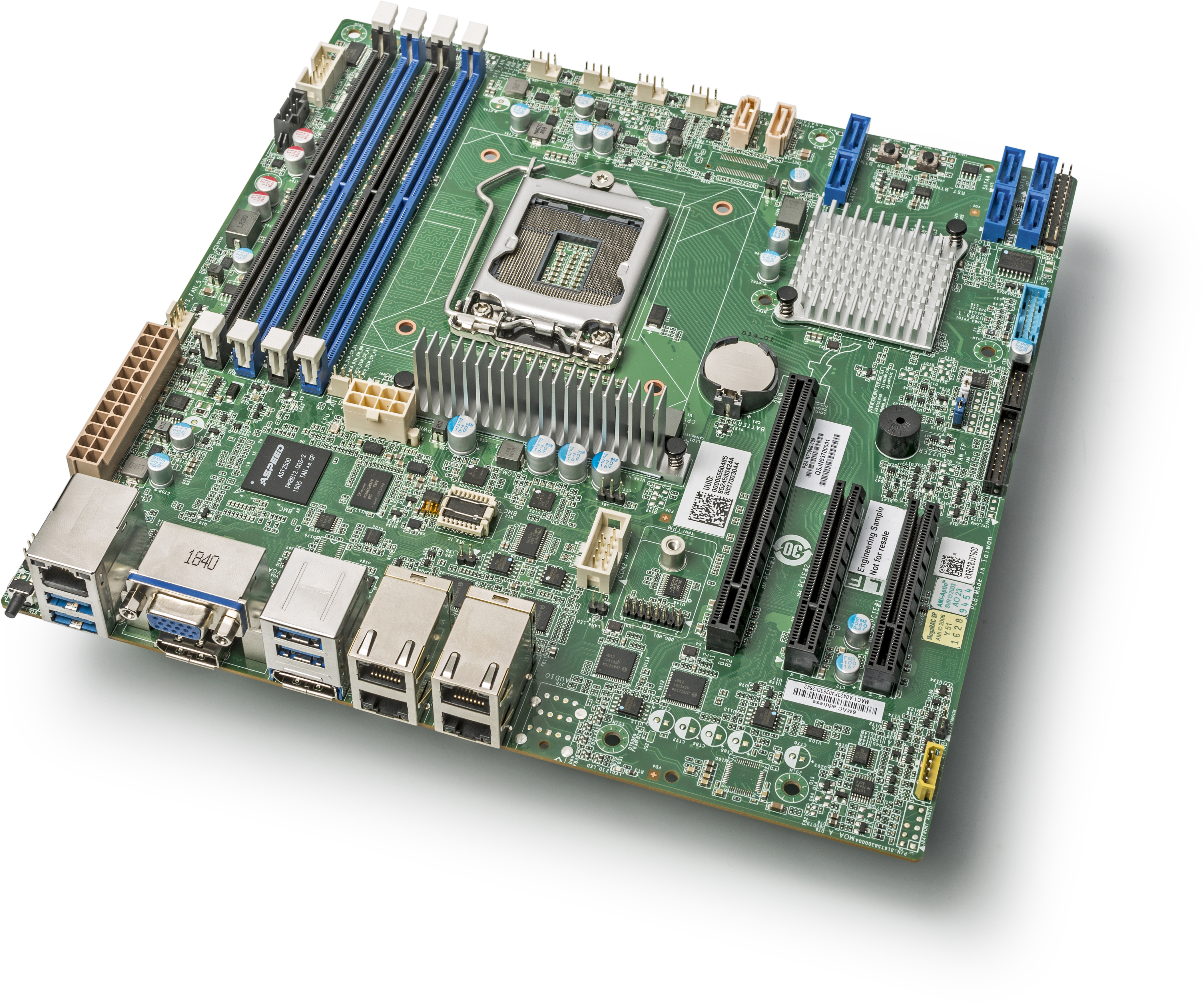 Passend zu den Xeon-E-2x00-Prozessoren für kleinere Server bietet Intel mit dem M10JNP2SB auch ein fernwartbares, mit vier GBit-Ethernet-Ports ausgestattetes Mainboard für bis zu 128 GByte ECC-RAM an.