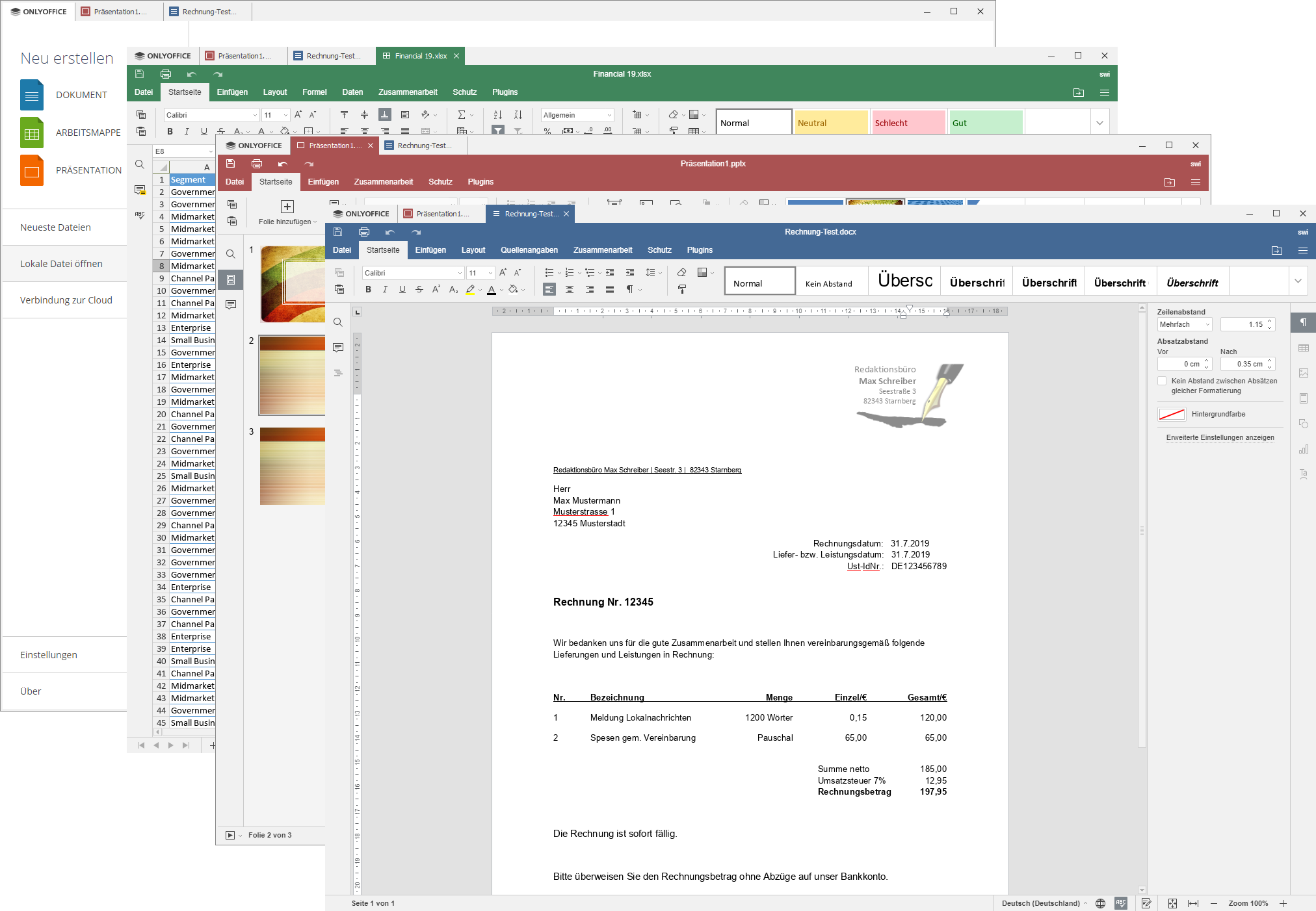 Das relativ unbekannte, quelloffene OnlyOffice aus Riga in Lettland unterscheidet sich von Google Docs und Microsoft Office Online in einigen wesentlichen Punkten. So setzt es für die Zusammenarbeit mehrerer Nutzer keine fremden Cloudspeicher voraus, sondern enthält eine Komponente, die sich auf selbst gehosteten Servern installieren lässt. Im letzten Jahr ist der Hersteller eine Partnerschaft mit Nextcloud eingegangen; in der aktuellen Nextcloud-Version gehört OnlyOffice sogar zum Installationsumfang.