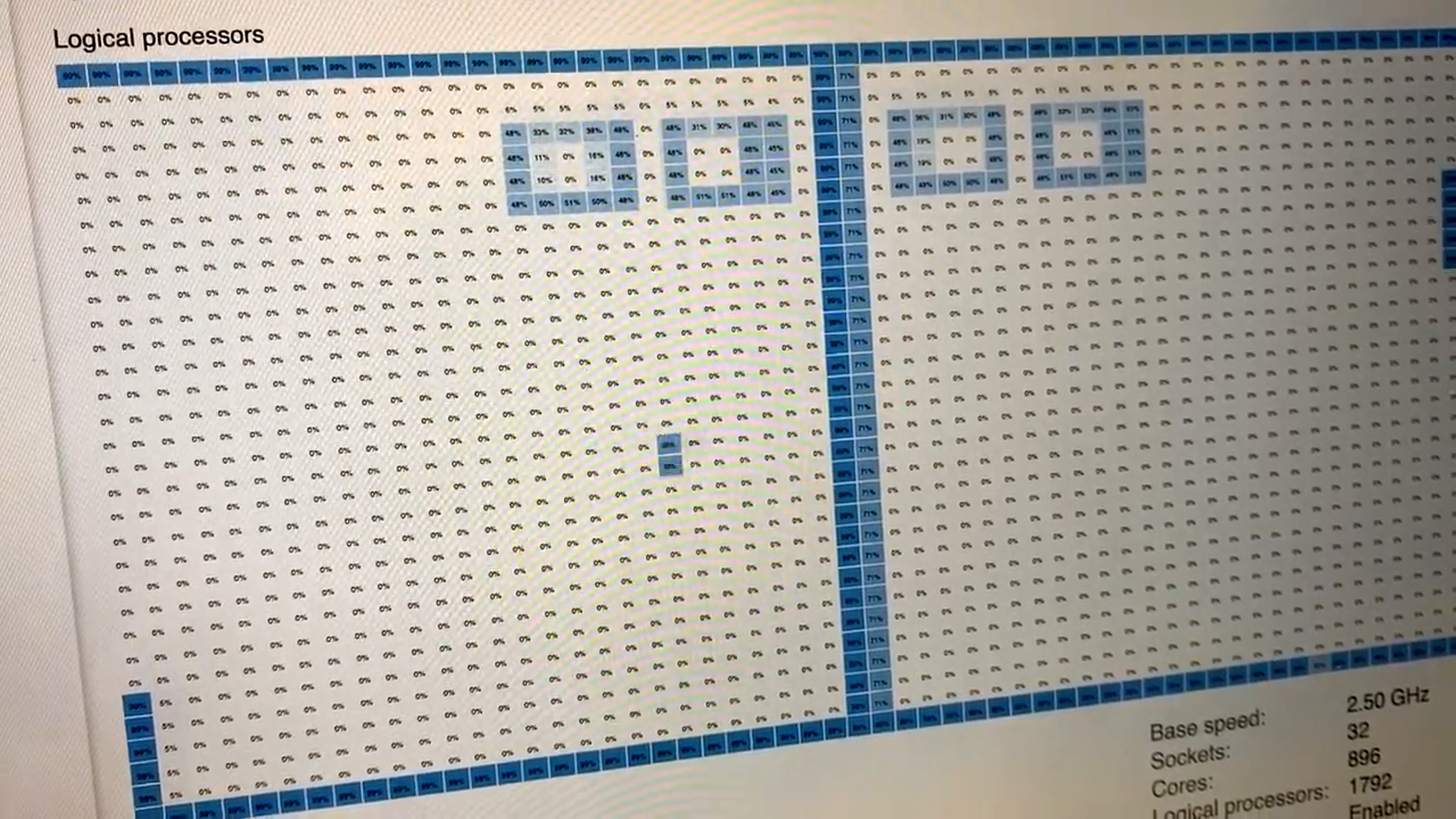 Bei Servern kommen die ARM-Einschläge näher, Gigabyte kündigt eine Maschine mit 192 ARM-Kernen und 768 Threads an: Jeder der beiden Marvell ThunderX3 hat 96 ARMv8.3-Prozessorkerne mit Vierfach-Multithreading. Als Kernmonster präsentierte sich kürzlich allerdings ein System mit 32 Intel-Xeons, die zusammen 1792 logische Kerne bereitstellen. Die CPU-Auslastungsanzeige von Windows im Task-Manager ordnet diese Kerne hübsch in 32 Zeilen mit je 56 Spalten an. Das wiederum nutzt ein Scherzbold, um durch gezielte Auslastung einzelner Kerne das Spiel Pong im Task-Manager anzuzeigen. Sofort wurde aber unterstellt, es könne sich dabei um eine Fälschung handeln. Große x86-Server mit 32 Xeons kann man aber durchaus kaufen, etwa bei HPE und Huawei. Microsoft hat darüber einen Blog-Eintrag geschrieben, um zu zeigen, dass Windows Server auch auf solchen Kolossen prima läuft.