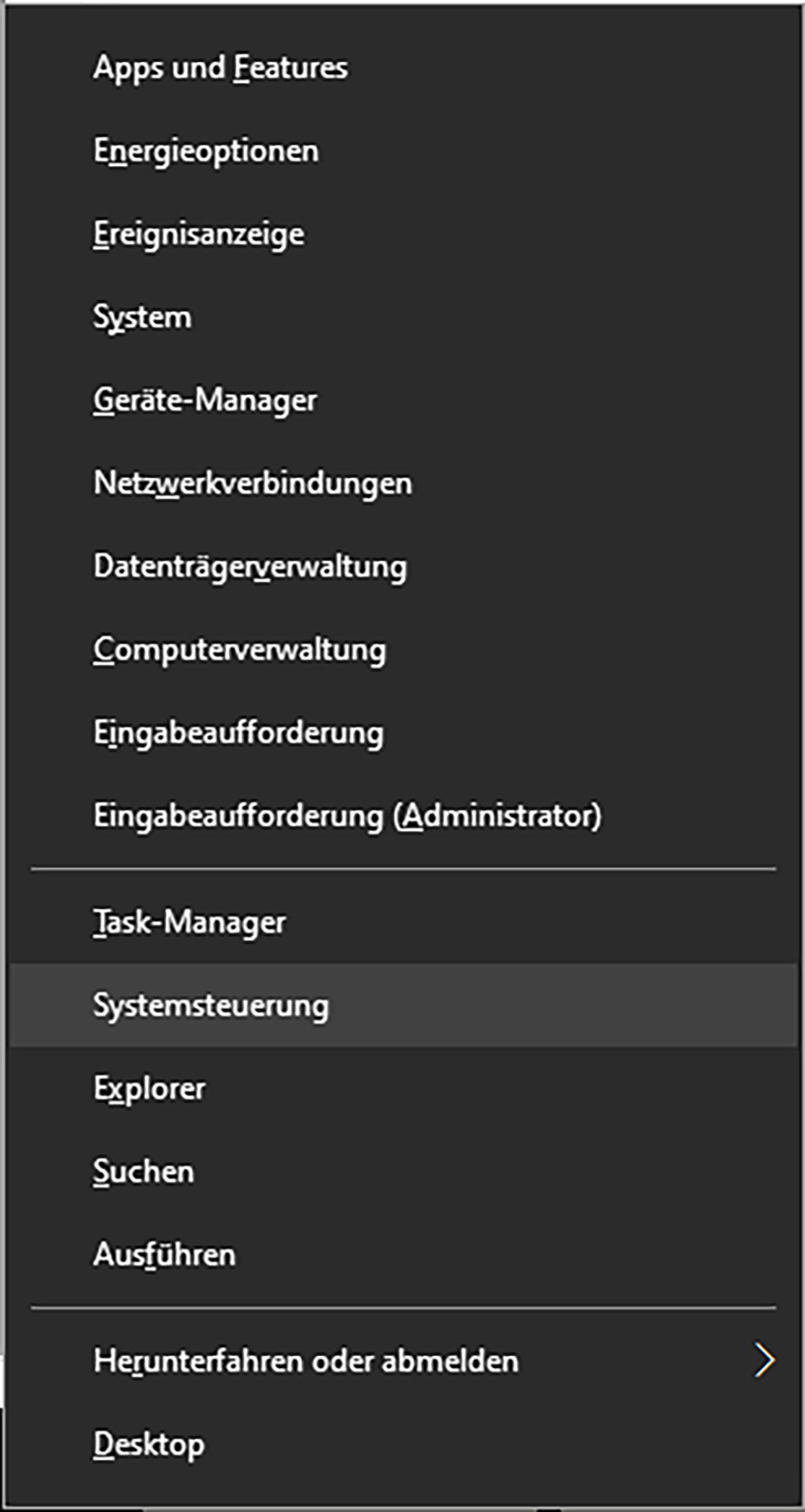 Seit einigen Versionen enthält das kleine Startmenü, welches sich unter Windows 10 beim Drücken von Windows+X öffnet, keinen Link zur Systemsteuerung mehr. Stattdessen ist jetzt einer zu den Einstellungen vorhanden. Doch den finde ich auch im normalen Startmenü und es gibt ja auch noch mit Windows+I eine Tastenkombination dafür. Nur zur Systemsteuerung führt nun kein direkter Weg mehr. Wie komme ich hin?