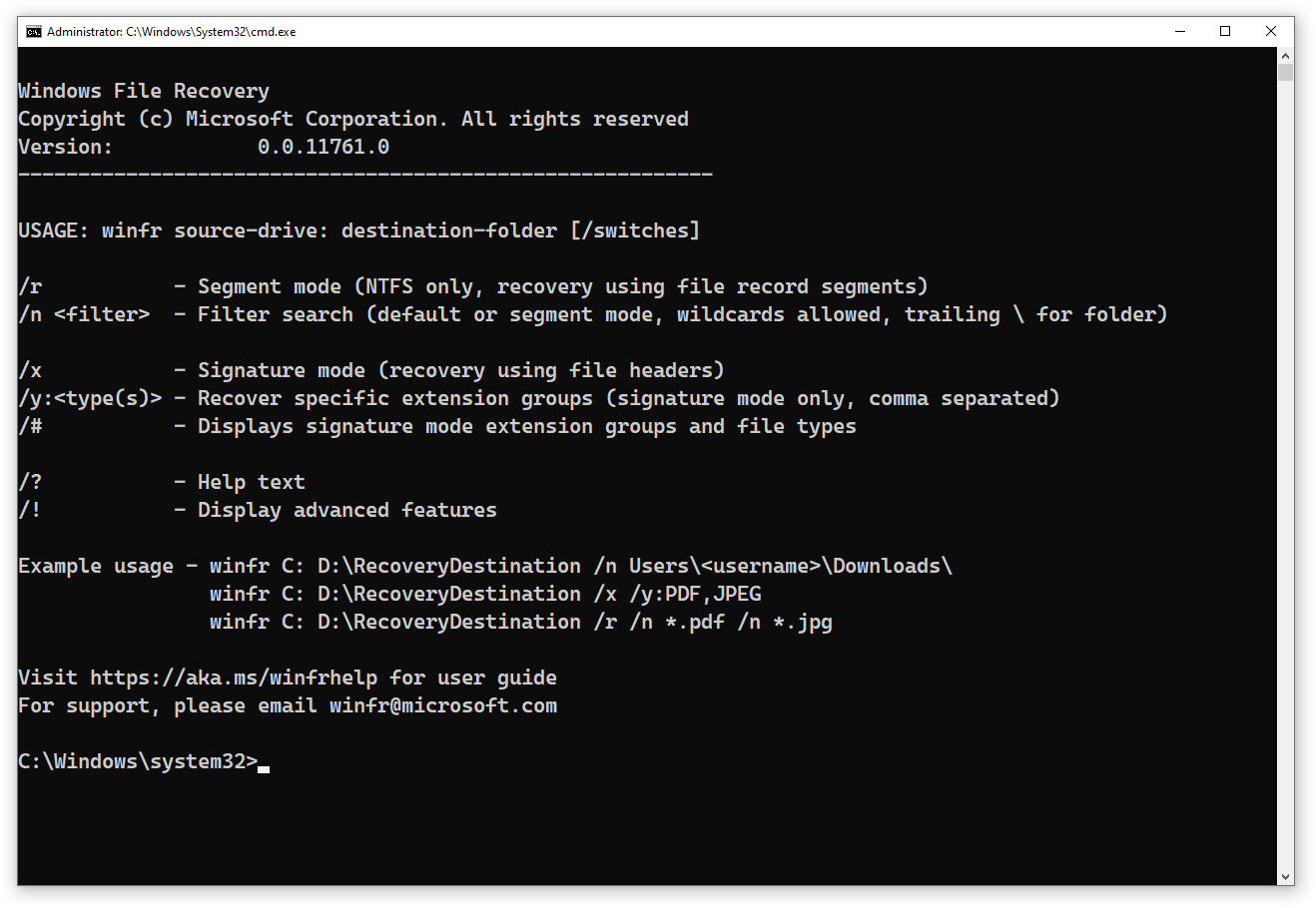 Der Verteilung über den Store zum Trotz ist Windows File Recovery keine App im eigentlichen Sinne, sondern besteht im Wesentlichen aus dem Konsolenprogramm WinFR.exe zum Betrieb in der Eingabeaufforderung oder der PowerShell. Das Programm kennt drei Betriebsmodi, die sich über Befehlszeilenoptionen auswählen lassen. Normalerweise arbeitet es im „Default“-Modus, in dem es versucht, verloren gegangene Dateien und Ordner anhand von Informationen wiederherzustellen, die sich noch in der Master File Table (MFT) eines NTFS-Laufwerks finden lassen. In diesem Modus findet das Programm kürzlich gelöschte Dateien und Ordner recht zuverlässig, sofern weder der von ihnen belegte Platz noch die dazugehörigen, nur als leer markierten Verzeichniseinträge bereits überschrieben wurden.