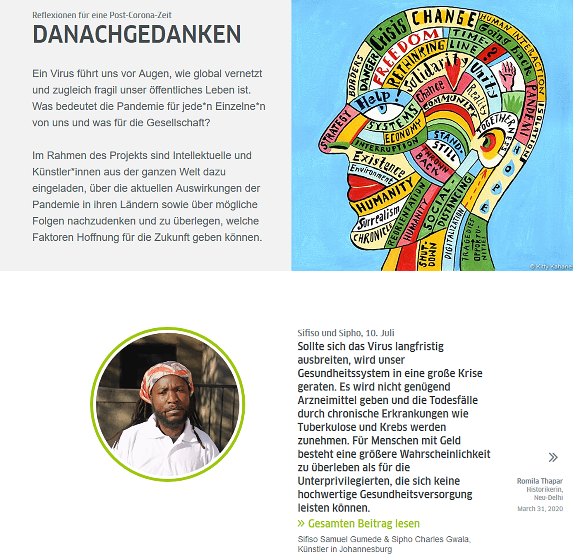 Das Goethe-Institut hat seine zahlreichen Kontakte in Kultur, Politik und Wissenschaft um einen Beitrag für sein Projekt Danachgedanken gebeten. Das Ergebnis: hochinteressante, oft sehr persönliche Texte, Videos und sogar Comics von klugen Köpfen aus aller Welt zu der Frage, wie die Pandemie unser Leben verändert. (dwi@ct.de)