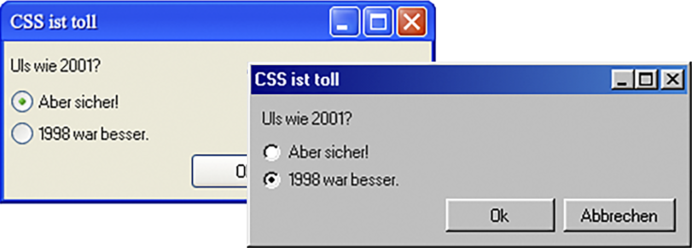 Als Webentwickler mit Sehnsucht nach der Vergangenheit bindet man in beiden Fällen nur eine CSS-Datei ein. Die Designs lassen sich dadurch sowohl in bloßen HTML-Seiten nutzen als auch mit JavaScript(-Bibliotheken) kombinieren. Zur Beschreibung der UI nutzen beide Projekte relativ schlichtes semantisches HTML, sodass man schnell und ohne größere Verrenkungen im Code nostalgische Gefühle aufkommen lassen kann. Ob es einen darüber hinausgehenden „Use-Case“ gibt, sei dahingestellt – ein Blickfänger ist es allemal. (syt@ct.de)