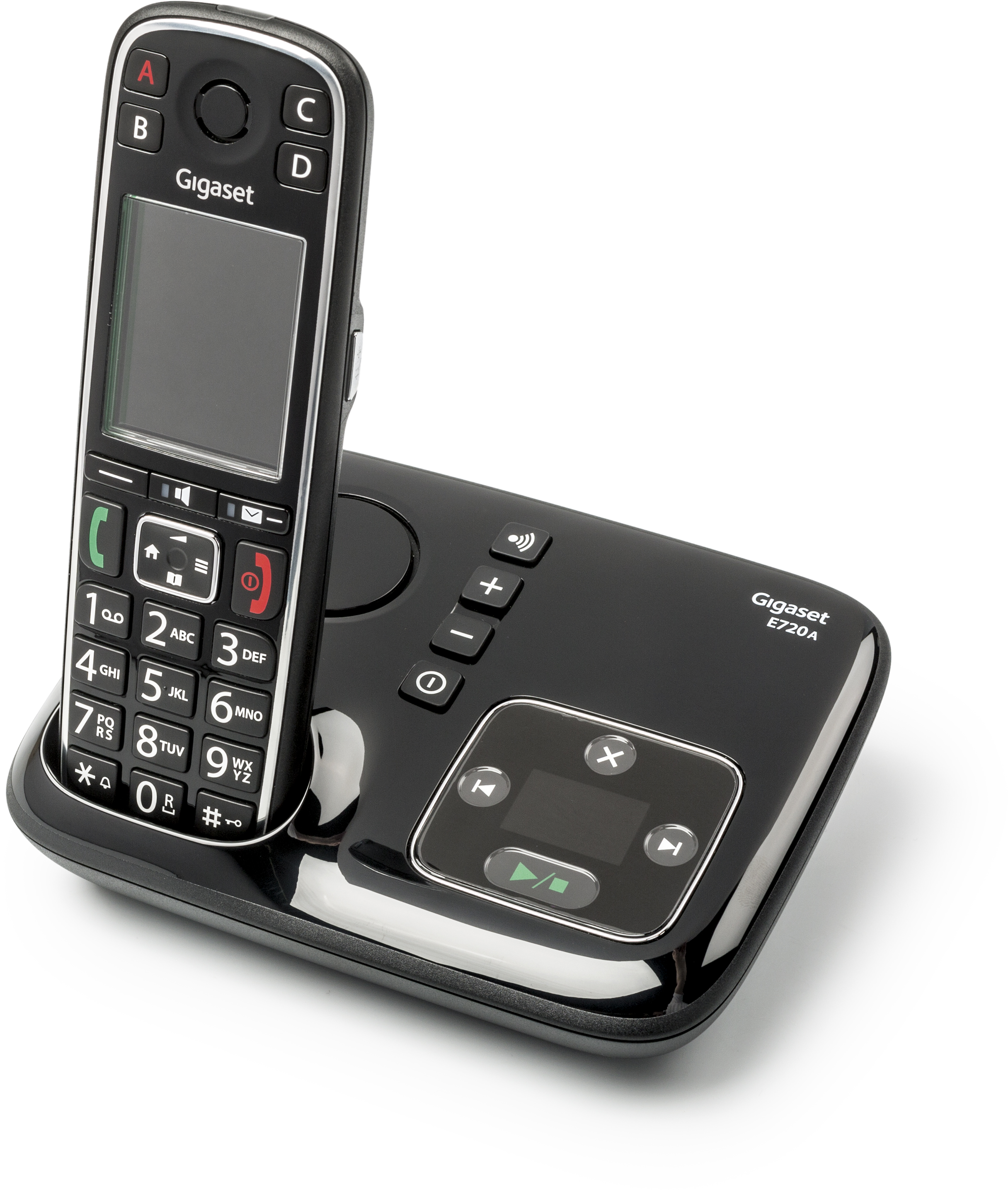 Das Ende Juli vorgestellte E720 von Gigaset ist ein klassisches Festnetztelefon, das für Menschen mit erweiterten Anforderungen an ein Telefon gedacht ist. Hierzu zählen beispielsweise Schwerhörigkeit oder Sehschwächen. Das Gerät ist in drei Varianten erhältlich: als reines DECT-Mobilteil inklusive Ladestation zum Einbuchen in DECT-GAP- oder CAT-iq-2.0-Basisstationen, wie solche in modernen Routern, oder als Variante mit eigener DECT-Basis – letztere wahlweise mit oder ohne Anrufbeantworter.