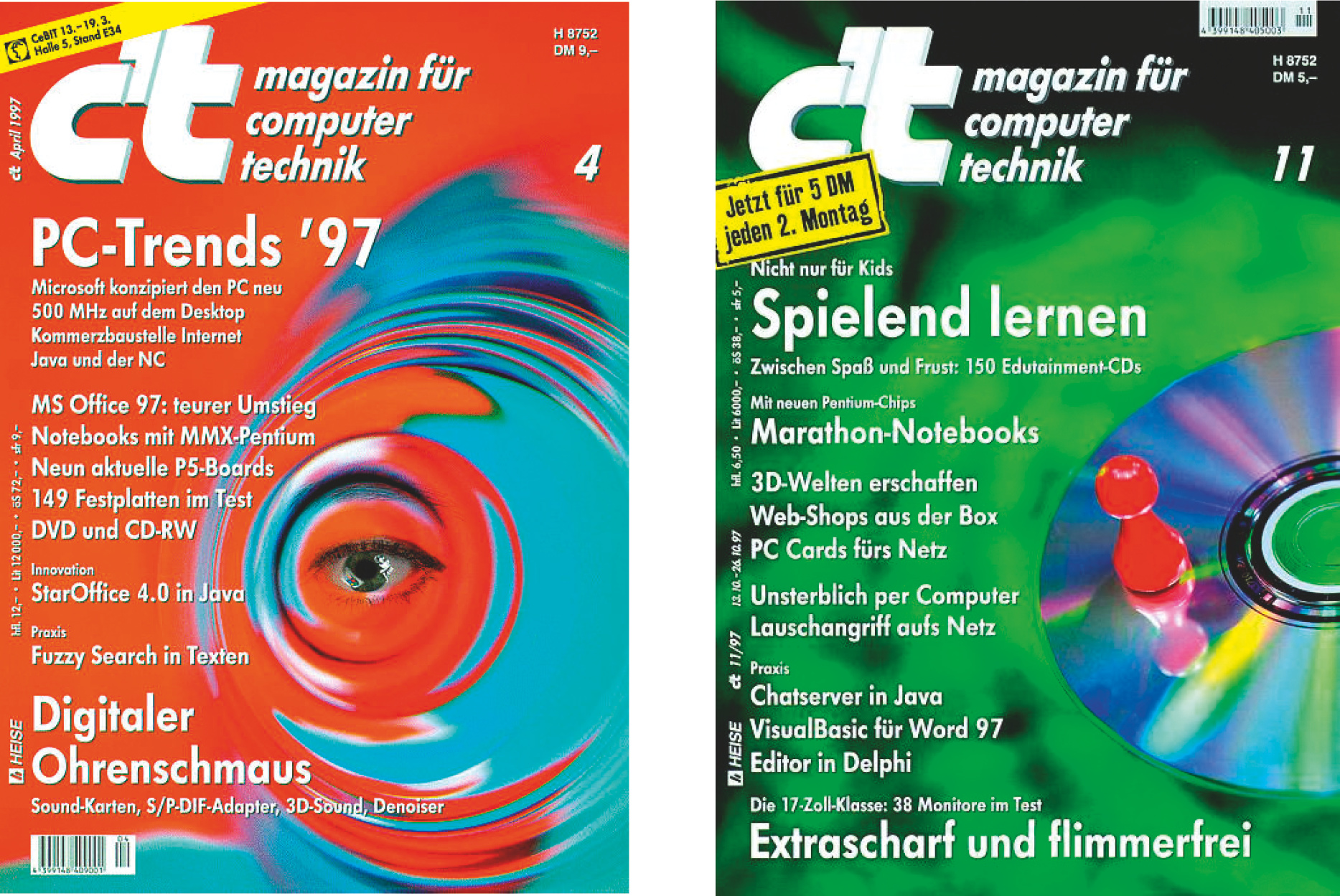 Heft 4/1997 umfasste stolze 614 Seiten. So konnte es nicht weitergehen. Ende des Jahres erschien dann die erste c’t im 2-Wochen-Rhythmus (11/1997).