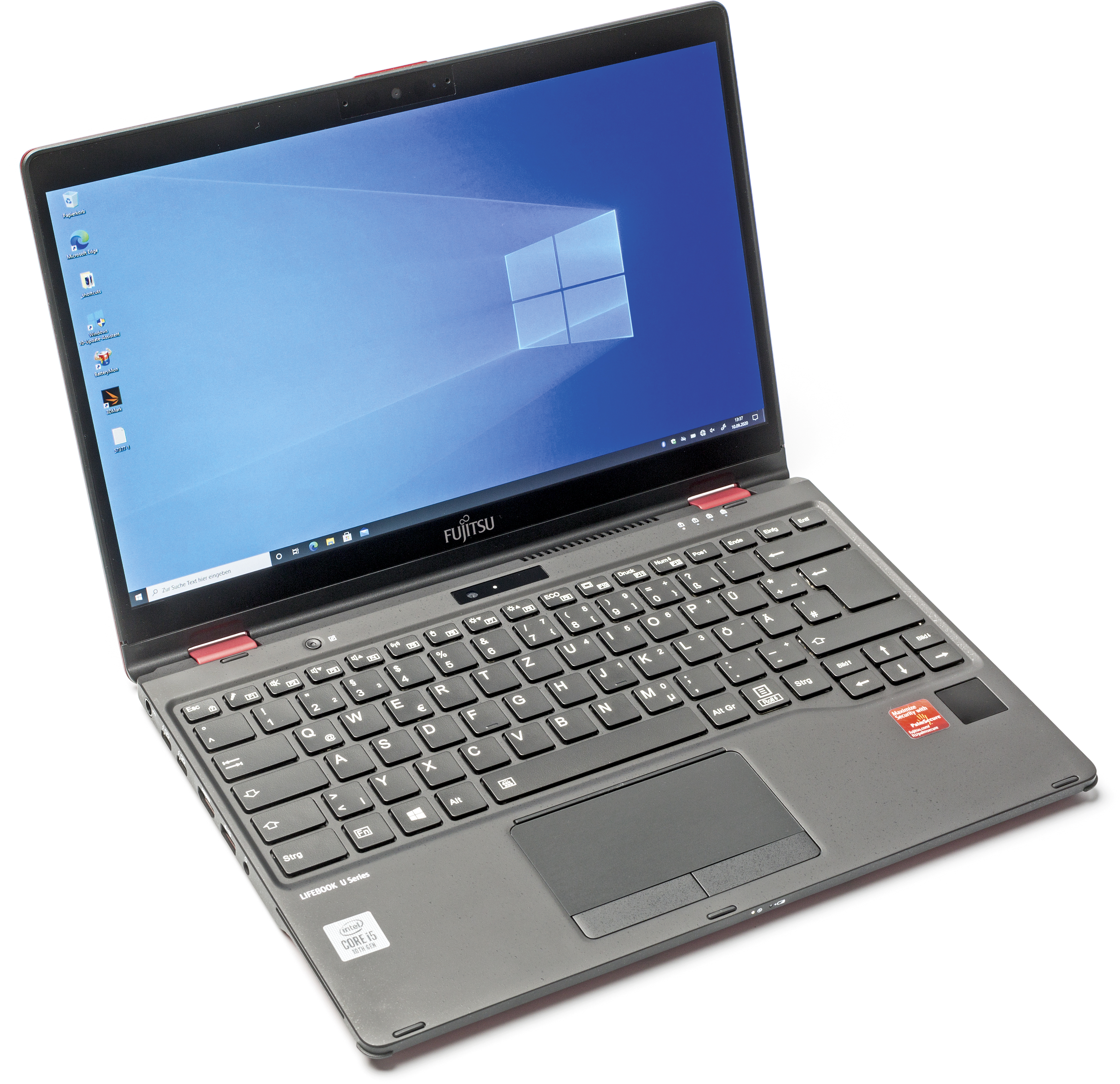 In dieser Geräteklasse ticken die Uhren etwas anders: Fujitsus aktuelles Oberklasse-Modell, das hier getestete LifeBook U9310X, kam erst vor Kurzem in den Handel, obwohl darin Prozessoren der zehnten Core-i-Generation werkeln – und Intel jüngst die elfte gestartet hat [1]. Hintergrund ist, dass Intel CPU-Varianten mit Langzeitverfügbarkeit und vPro-Fernwartungsfunktion immer erst später im Lebenszyklus einer Core-i-Generation folgen lässt – und in der zehnten Core-i-Generation war es nun mal erst in diesem Sommer so weit. Die im LifeBook verwendeten Prozessoren entstammen zudem weiterhin Intels etablierter 14-Nanometer-Fertigung; 10-Nanometer-CPUs mit vPro kommen wohl frühestens 2021 als Tiger-Lake-Chips.