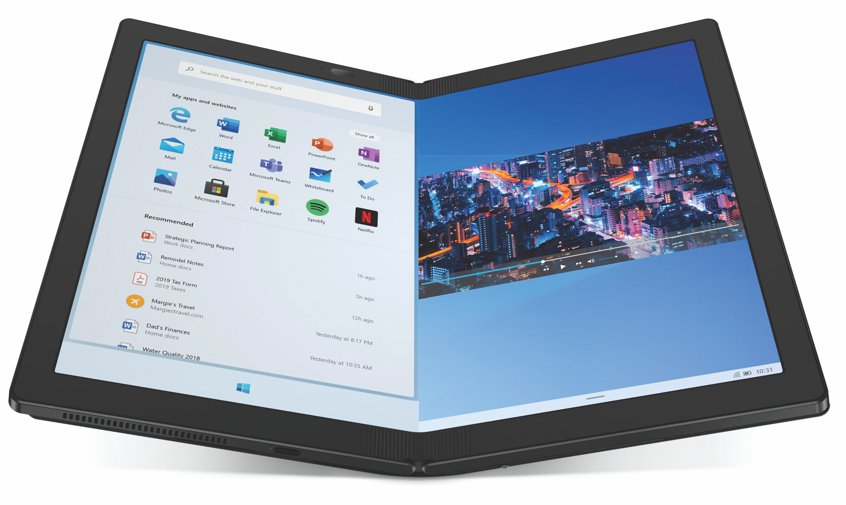 Das ThinkPad X1 Fold mit faltbarem OLED-Bildschirm hatte Lenovo schon mehrmals im vergangenen Jahr gezeigt, doch erst jetzt ist klar, dass es tatsächlich den Weg in den Handel schafft: Ab Mitte des Jahres soll es für mindestens 3000 Euro erhältlich sein. Eine Bluetooth-Tastatur, die aus dem Tablet ein Notebook macht, wird nicht beiliegen, aber separat verkauft. Als Betriebssystem ist Windows 10 an Bord, wobei Lenovo sich noch die Option offenhält, später auf Windows 10 X zu wechseln. Letzteres entwickelt Microsoft speziell für Dual-Screen-Mobilrechner, also das angekündigte Surface Neo.