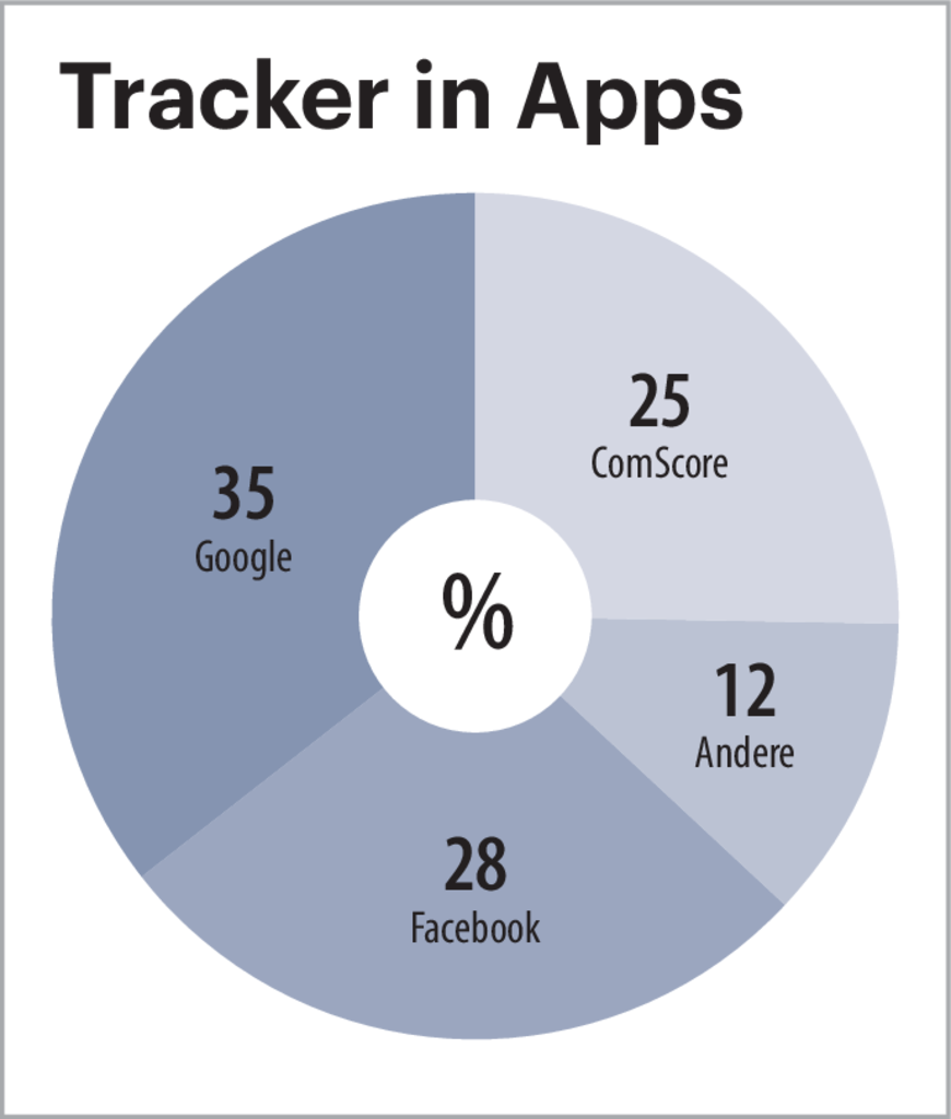 Wer hinsichtlich des Datenschutzes in Android-Smartphones aber nur auf Google schielt, zielt zu kurz. Das Entgoogeln von Android-Smartphones stellt die Weitergabe von Nutzerdaten an Dritte ganz und gar nicht ab. Denn die Mehrzahl an Trackern, die sich in Apps finden, berichtet nicht an Google, sondern an andere Abnehmer, etwa Facebook, an die Smartphone-Hersteller selbst oder an Marktforscher wie Comscore. Bei eigenen Versuchen ermittelten wir sogar einen Anteil von knapp zwei Dritteln Kontaktierungsversuchen solcher App-fremder Server (siehe Bild).