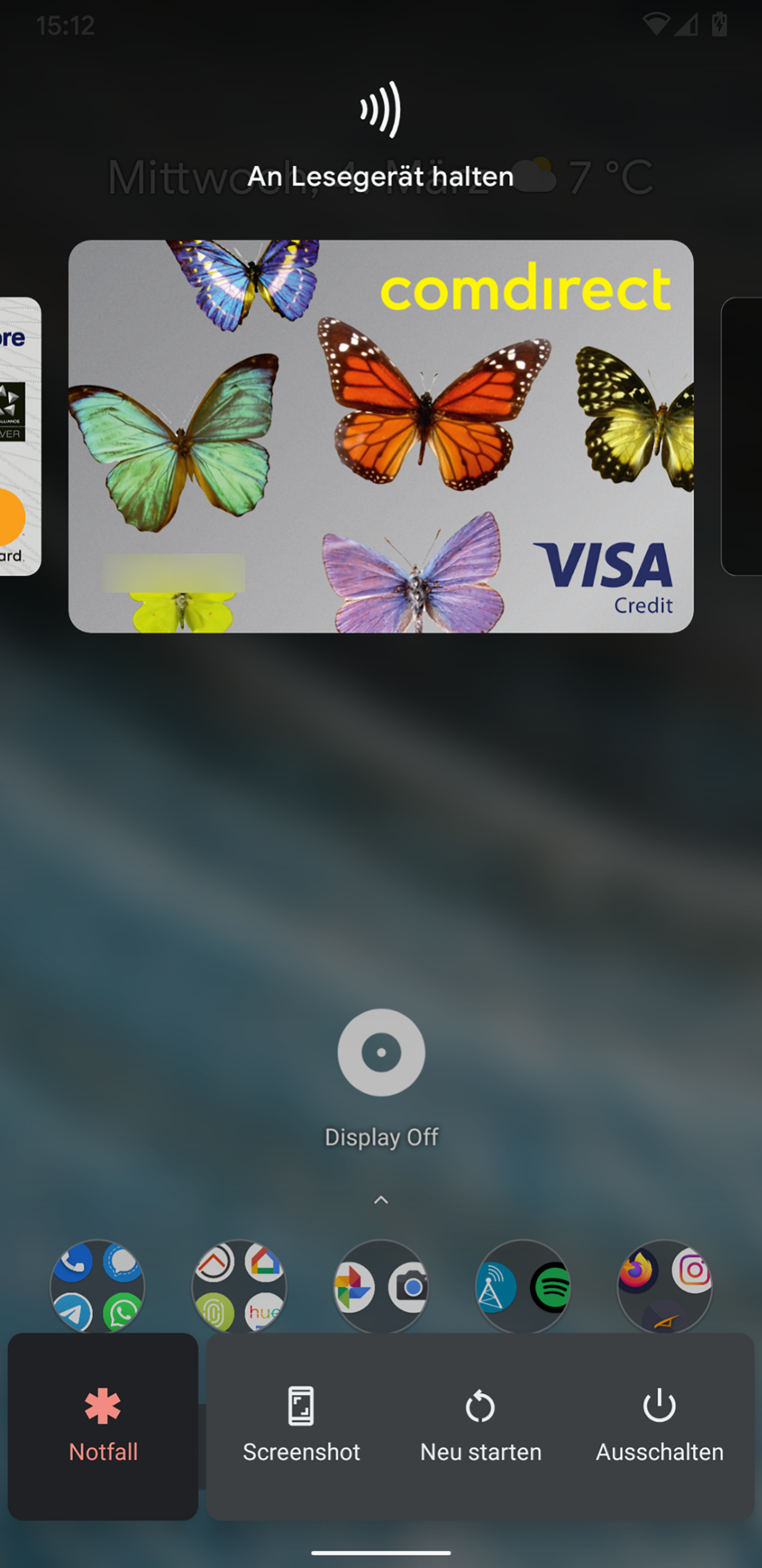 Das Power-Menü, das sich durch einen längeren Druck auf die Ein/Aus-Taste öffnet, enthält künftig einen Schnellzugriff auf die in Google Pay hinterlegten Kreditkarten und Flugtickets. Sofern letztere nicht anhand der Bestätigungsmail automatisch in Google Pay landen, lassen sie sich nun per Screenshot manuell hinzufügen.