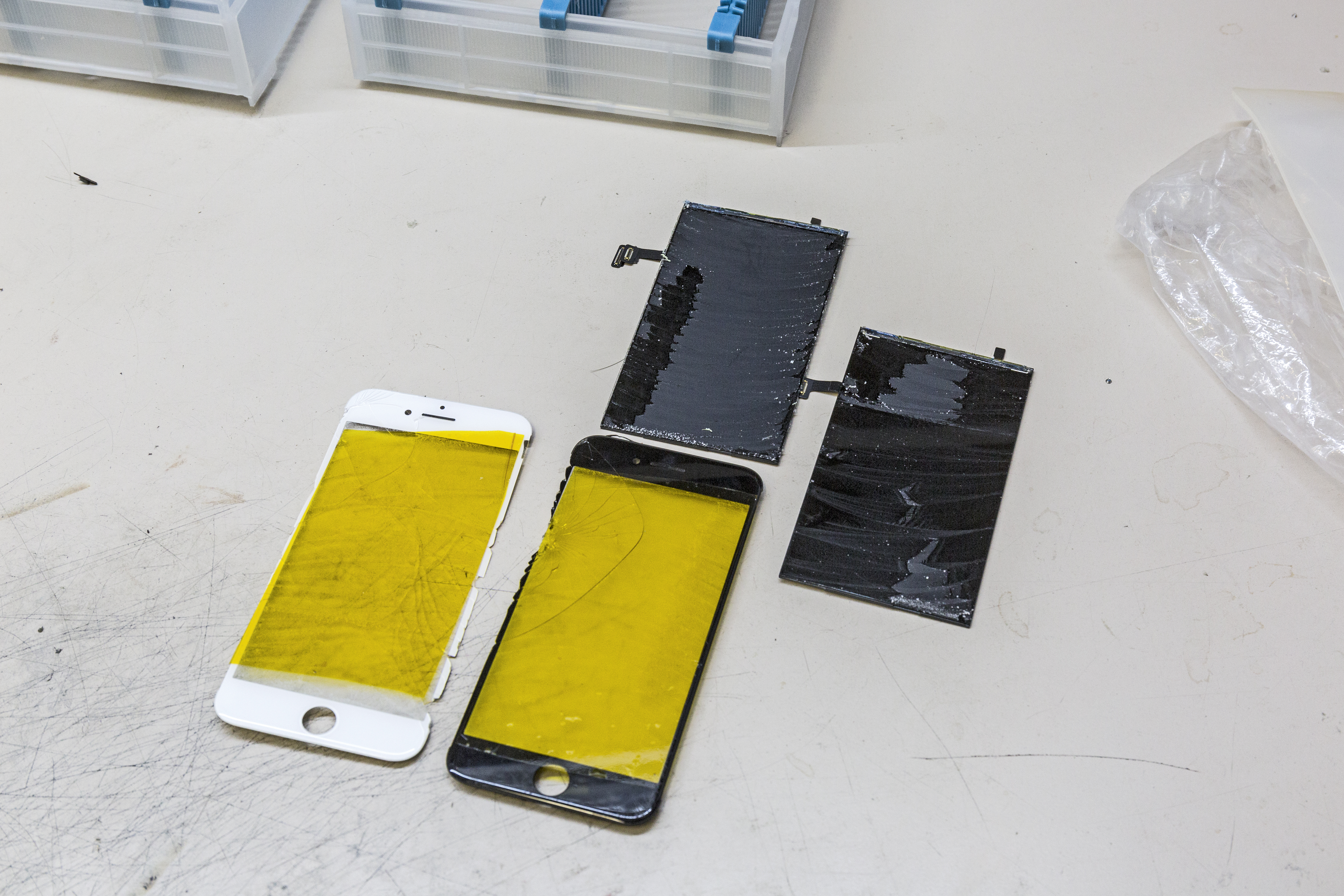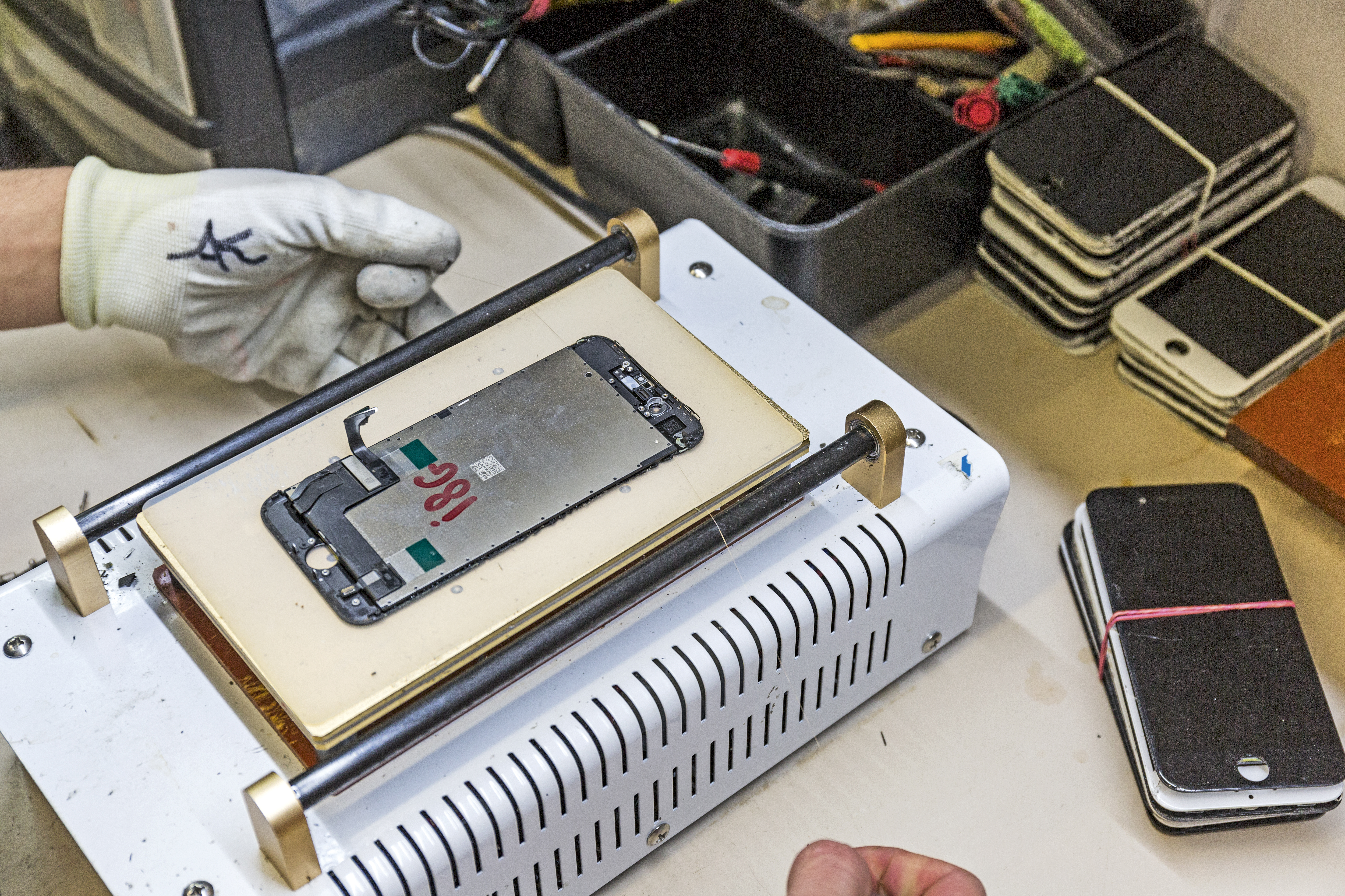 Ein wichtiger Treiber der Professionalisierung ist die technische Entwicklung: Displays, Akkus und weitere Teile sind inzwischen in vielen Smartphones verklebt. Schon der Tausch einer kompletten Display-Einheit erfordert deshalb viel Erfahrung. Noch schwieriger ist es, anschließend das gesplitterte Glas zu entfernen, um den wertvollen Bildschirm weiter verwenden zu können. Mit einem Plastikspatel kommt man da nicht weit.