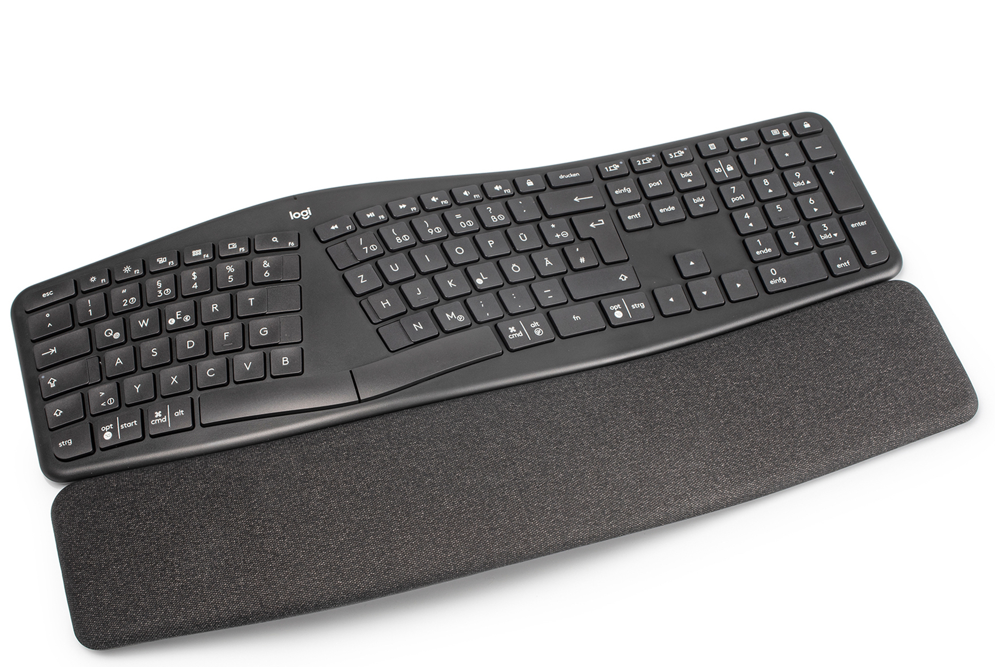 Ergonomische Arbeitsmittel beugen Gelenkschäden und Ermüdungen vor – das ist ebenso bekannt wie wenig beachtet. Dank ihrer geschwungenen Form und der bequemen Handballenauflage tippt es sich auf der Ergo K860 angenehmer und auch ruhende Hände liegen entspannter als auf einem konventionellen Modell.
