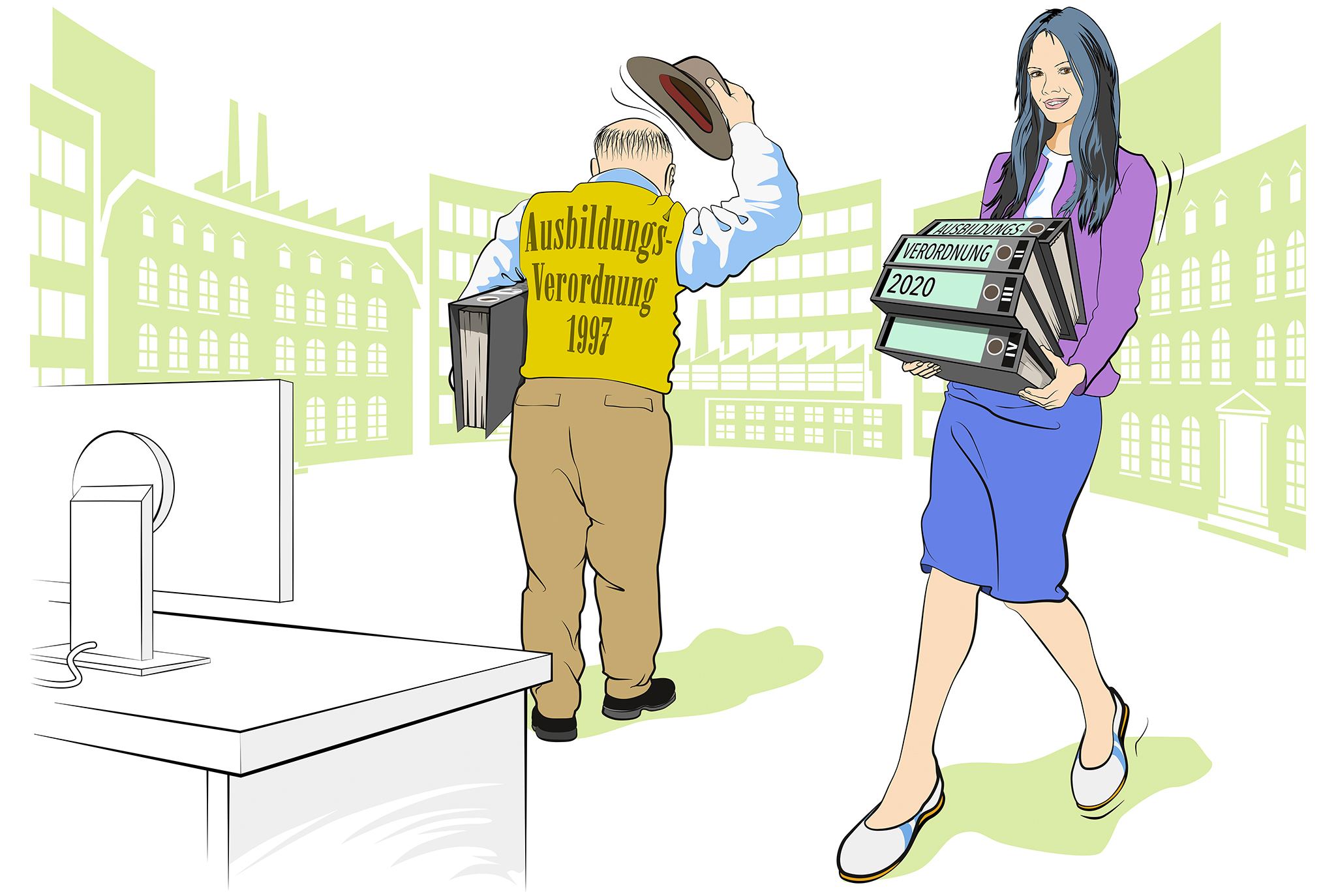 Grundlage aller vier dualen IT-Berufe ist aktuell noch immer eine Ausbildungsverordnung aus dem Jahr 1997. Sie soll nun durch eine neue Fassung abgelöst werden, in der auch berufliche Qualifikationen rund um Industrie 4.0, Big Data, Machine Learning und IoT berücksichtigt werden. Anfang 2015 erteilte das Bundesministerium für Wirtschaft und Energie (BMWi) dem Bundesinstitut für Berufsbildung (BIBB) mit Sitz in Bonn den Auftrag, den Modernisierungsbedarf der vier Ausbildungsgänge zu prüfen. Das Ergebnis der Voruntersuchung der Bonner Experten: Die IT-Berufe sind ein Erfolgsmodell, aber in die Jahre gekommen. Eine erste Nachbesserung trat schon 2018 in Kraft: In den Beschreibungen aller Berufe wurde damals in den Listen der nötigen Kompetenzen insbesondere das Thema IT-Sicherheit (Datenschutz und Datensicherheit) verstärkt behandelt.