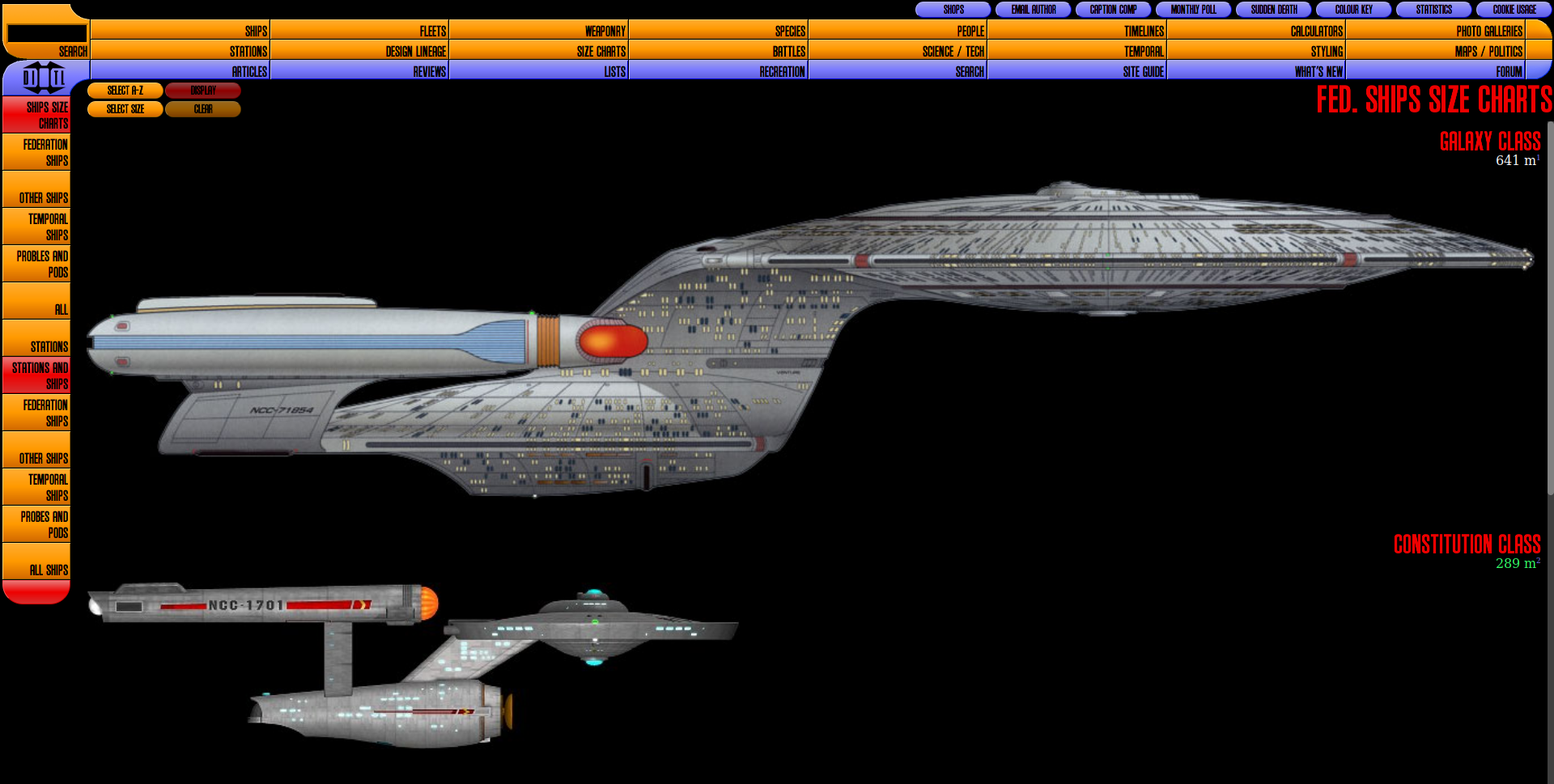 Ein Highlight sind die Size-Charts. Beliebige Raumschiffe, Sonden und Raumstationen lassen sich hier maßstabsgetreu nebeneinander darstellen. Dann ist immerhin klar, wie groß Picards Schiff im Vergleich zu Kirks Enterprise ist. (syt@ct.de)