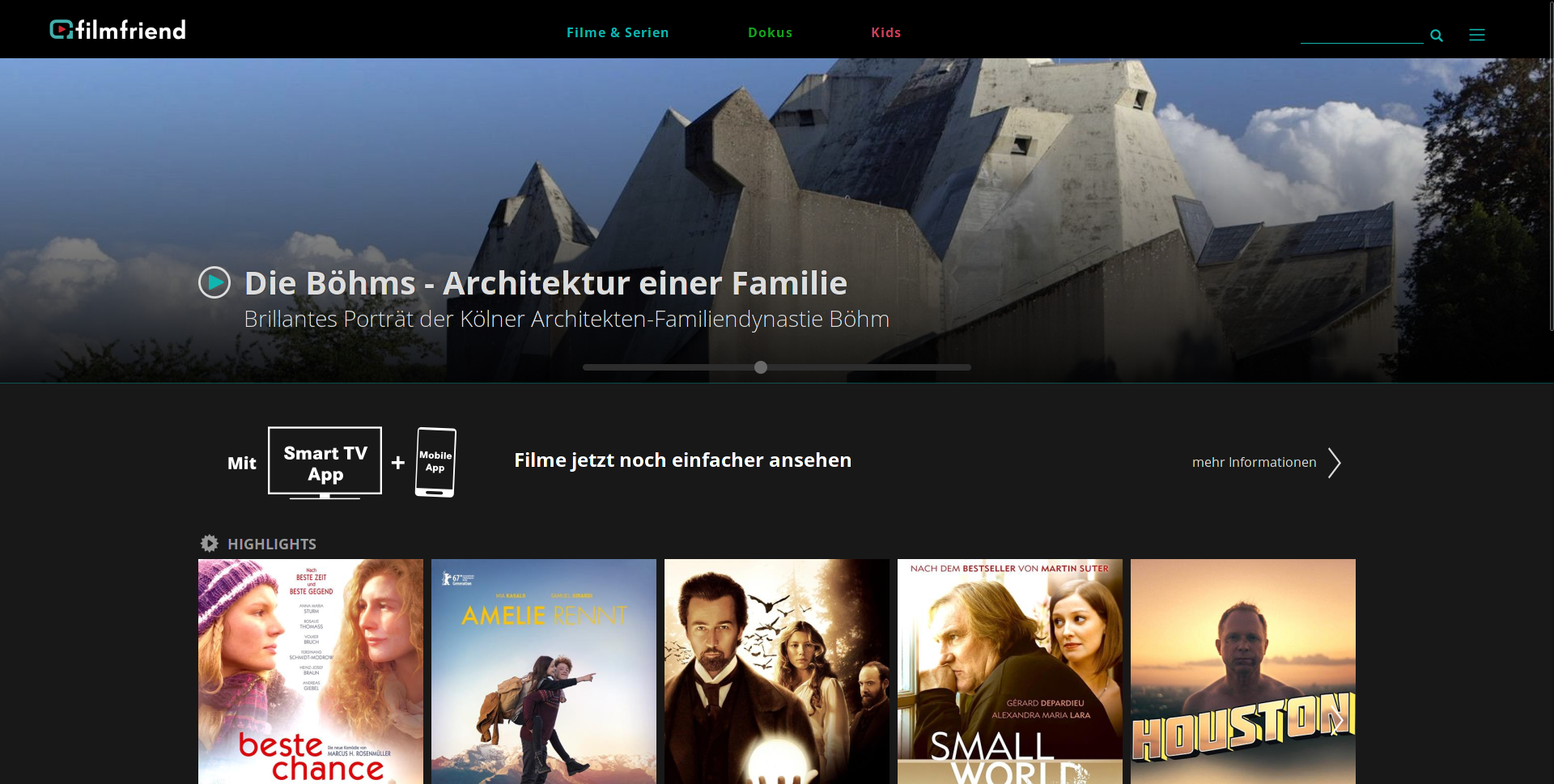 Inhaltlich gibt sich Filmfriend wie eine Streaming-Version von Arte. Im Angebot finden sich jedoch viele Filme, die weder in Mediatheken noch bei den Streamingdiensten zu haben sind: viele deutsche Produktionen, aber auch internationale Filmkunst, etwa der poetische Busfahrer von Jim Jarmusch oder der in Teheran taxifahrende Filmemacher Jafar Panahi, Historisches, Filmklassiker aus den Defa-Archiven und Kinderfilme. (ps@ct.de)