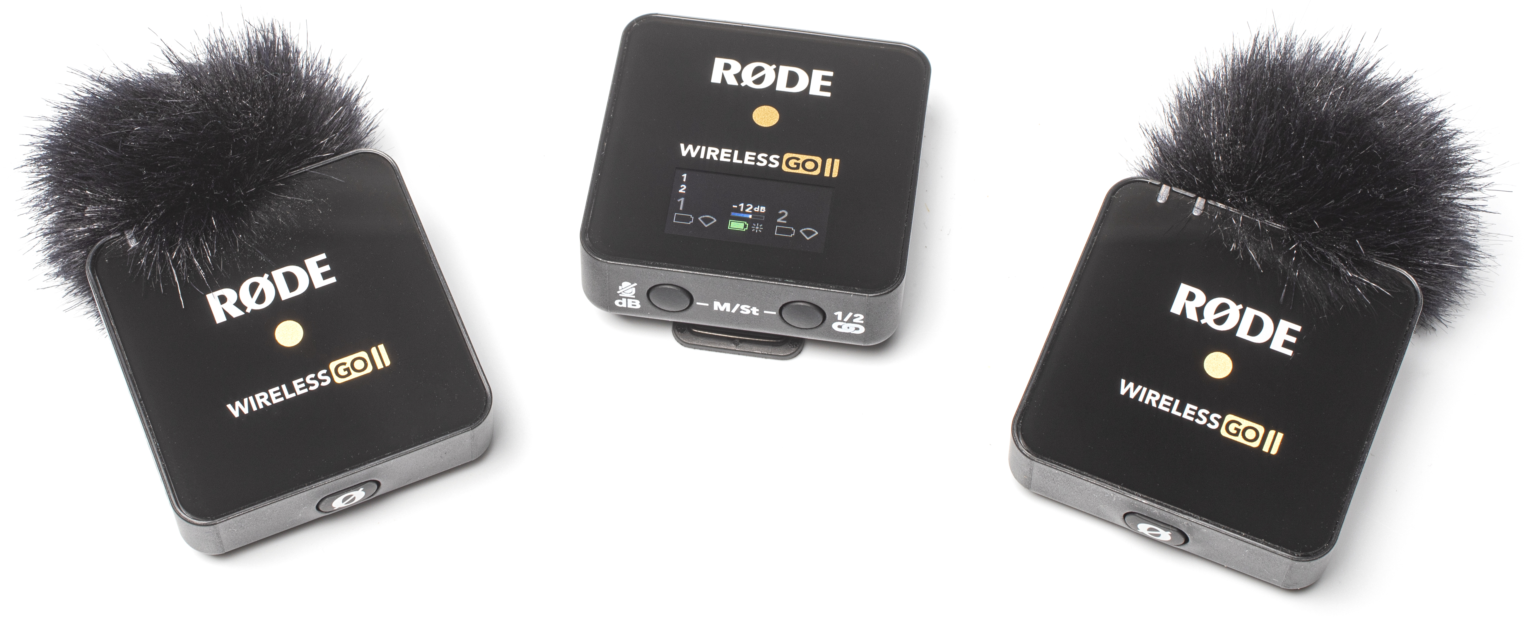 Klassische „Funkstrecken“, die etwa bei Interviews den Ton drahtlos zur Kamera transportieren, nutzen üblicherweise zigarettenschachtelgroße Sender in Verbindung mit einem Ansteckmikrofon (Lavalier). Insofern gelang Røde 2019 mit dem „Wireless Go eine kleine Revolution: Dessen Sendemodul ist kaum größer als eine Streichholzschachtel und lässt sich dank integriertem Mikrofon direkt ans Hemd klemmen. Die so erreichte Tonqualität genügt meistens, ansonsten gibt es noch einen 3,5-mm-Klinkeneingang für ein Lavalier. Der ebenso kleine Empfänger mit 3,5-mm-Analogausgang lässt sich einfach an jede Kamera montieren.