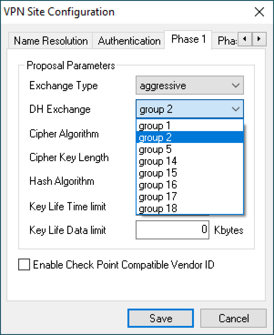 Überprüfen Sie, ob in der VPN-Konfiguration des Shrew-Soft-Clients für Ihre Fritzbox unter „Phase 1“ der Diffie-Hellman-Schlüsselaustausch (DH Exchange) mit Gruppe 2 (1024-Bit-Modulus) aktiviert ist (siehe Screenshot). Größere Moduli, die die Aushandlung des Sitzungsschlüssels besser schützen, unterstützen Fritzboxen unseres Wissens nicht.