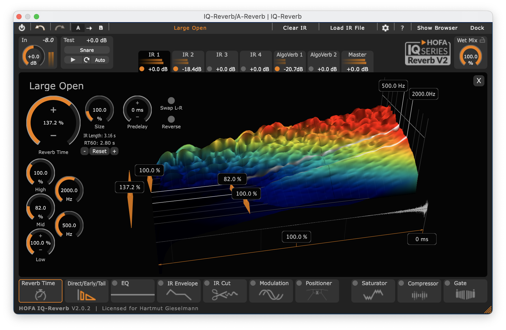 Der IQ-Reverb 2 von Hofa verwischt die Grenzen dieser beiden Reverb-Sorten. Das Plug-in bringt 1500 Impulsantworten mit und listet diese nach Raumarten, Länge und Instrumenteneignung in seinem Browser auf. Dank flexibler Filter und einer Sortierung nach dumpf und hell klingenden Räumen finden Sie schnell eine ungefähr passende Impulsantwort. Diese lässt sich anschließend so exakt den eigenen Bedürfnisse anpassen, wie es sonst nur bei parametrischen Reverbs möglich ist.