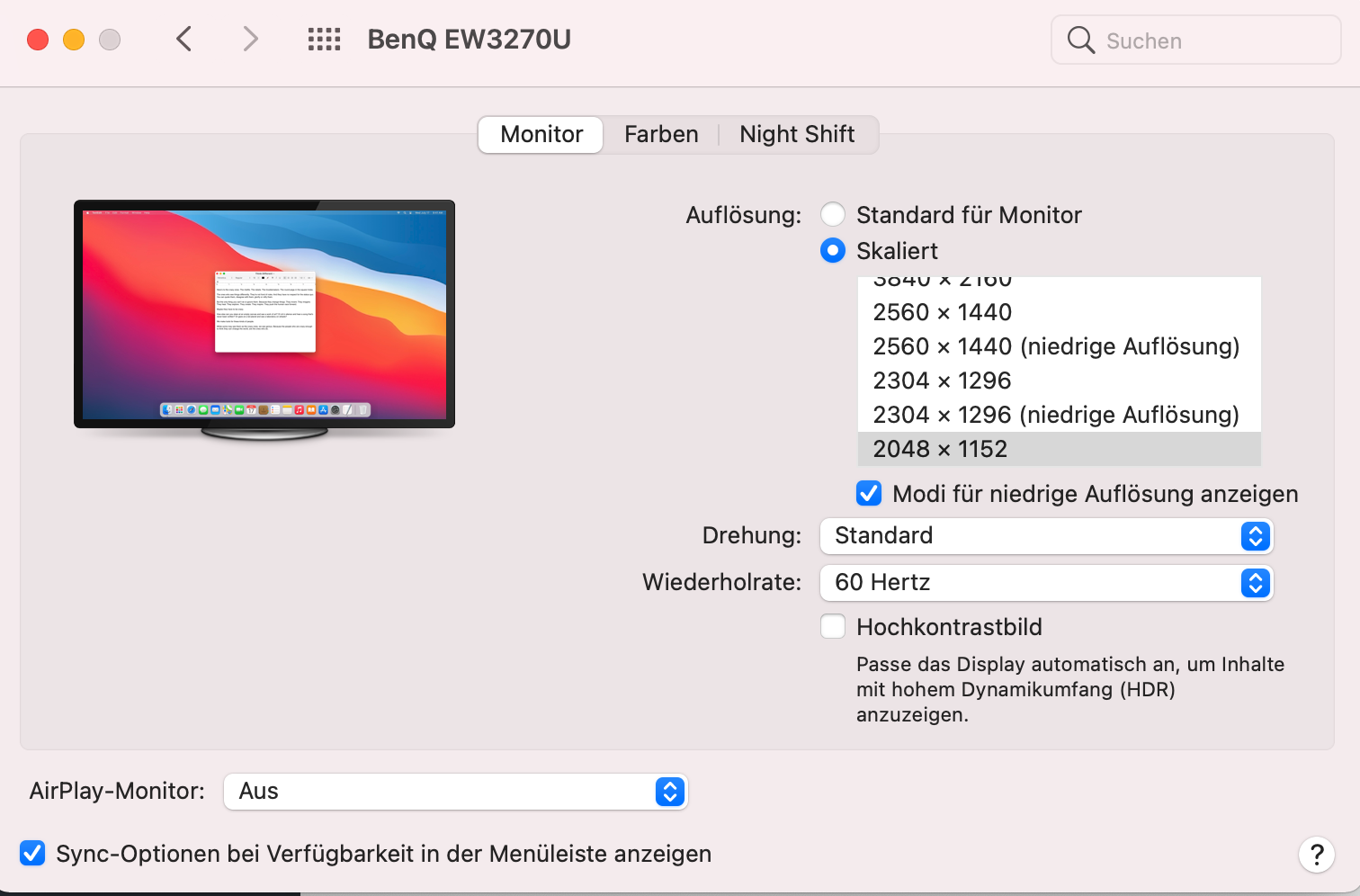 Möglicherweise hilft es, wenn Sie die Bildschirm-Wiederholfrequenz auf Ihrem MacBook ändern. In einem uns bekannten Fall funktionierte es wieder, nachdem der Nutzer diese von 60 auf 50 Hertz reduziert hatte. Rufen Sie dazu die Systemeinstellungen auf und klicken auf „Monitore“. Im entsprechenden Menü können Sie unten die „Wiederholrate“ anpassen, wenn Sie „Skaliert“ mit der richigen Auflösung auswählen und den Haken bei „Modi für niedrige Auflösungen anzeigen“ setzen. Ob die Ursache beim Generator, dem Betriebssystem (oder beiden) liegt, konnten wir nicht klären. (mon@ct.de)