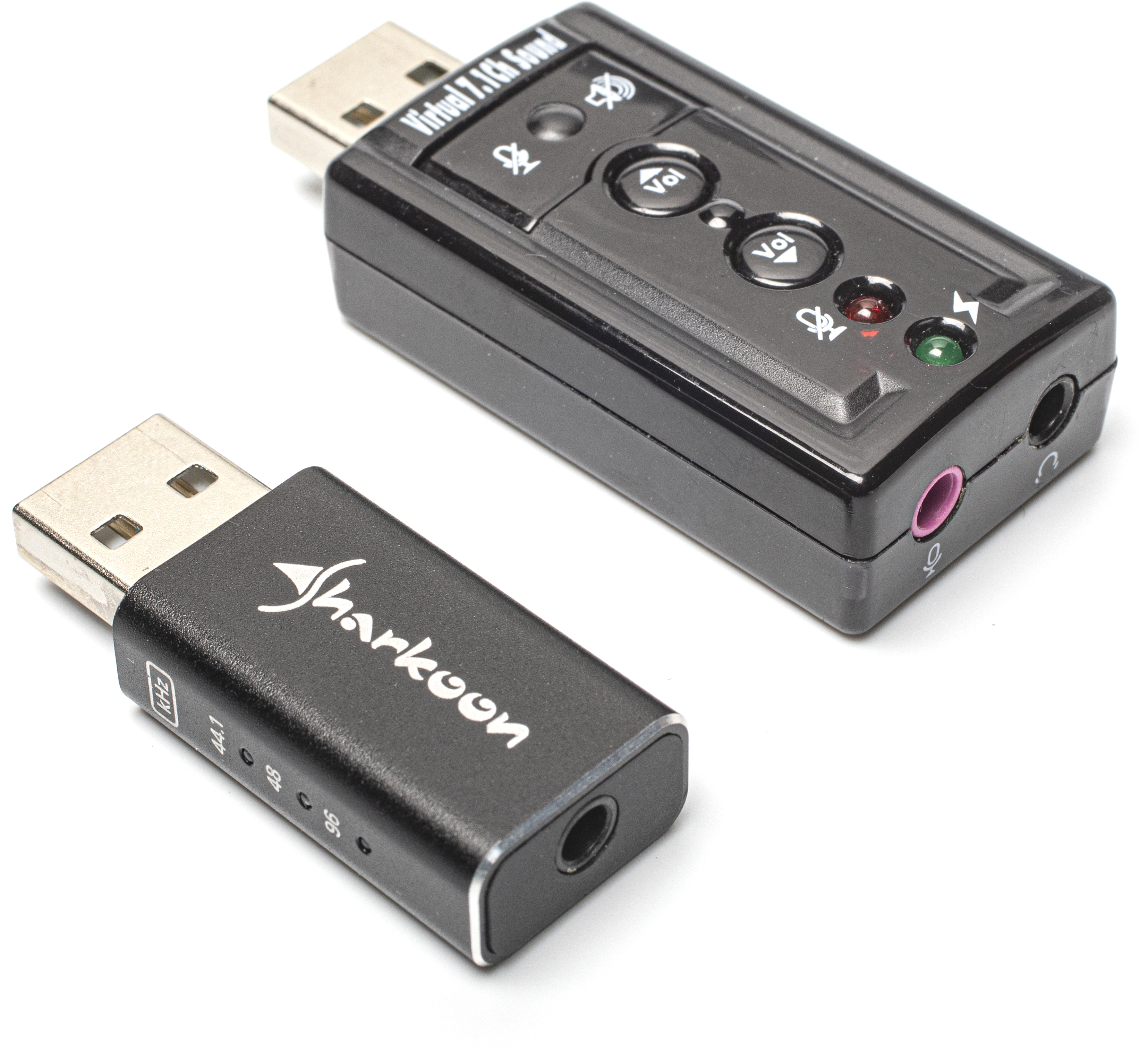 Der Sharkoon Gaming DAC Pro S V2 besitzt eine vierpolige TRRS-Klinkenbuchse (Tip, Ring, Ring, Sleeve) und kostet etwa 30 Euro. Bei TRRS ist die Spitze (Tip) für den linken und die daran angrenzende Fläche (Ring) für den rechten Audiokanal zuständig. Der folgende Bereich (Ring) übermittelt die Mikrofonsignale, der Schaft (Sleeve) dient als Masse. Ein dreipoliger Klinkenstecker von Kopfhörern ohne Mikro funktioniert ebenfalls in der Adapter-Buchse.