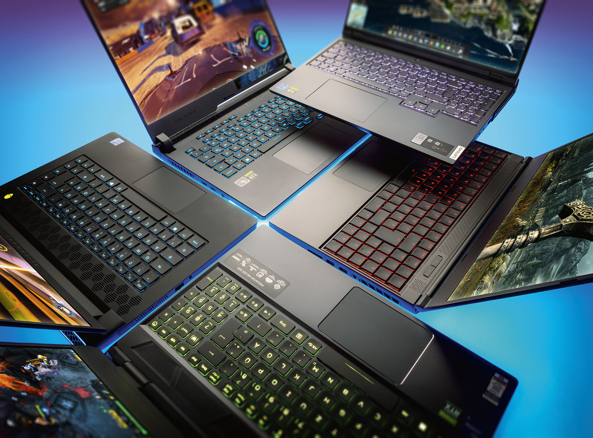 Starke Gaming-Notebooks stellen moderne Spiele in hohen Detailgraden ruckelfrei dar und sind dennoch mobil. Wir lassen sechs Geräte mit 15,6- bis 16,1-Zoll-Bildschirmen gegeneinander antreten, die allesamt Nvidias High-End-GPU GeForce RTX 3070 Ti enthalten.