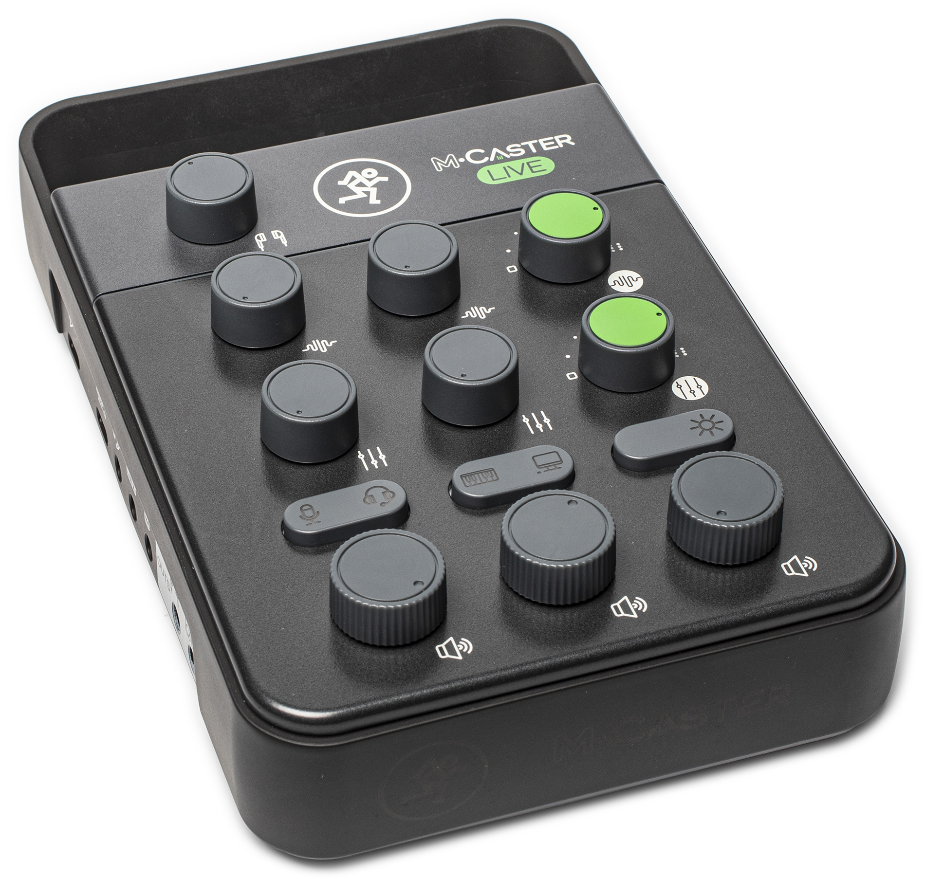 Der M-Caster Live mischt Mikrofonsignale und Stereoquellen mit einem PC/Smartphone-Ausgang, verziert sie mit Effekten und leuchtet bunt.