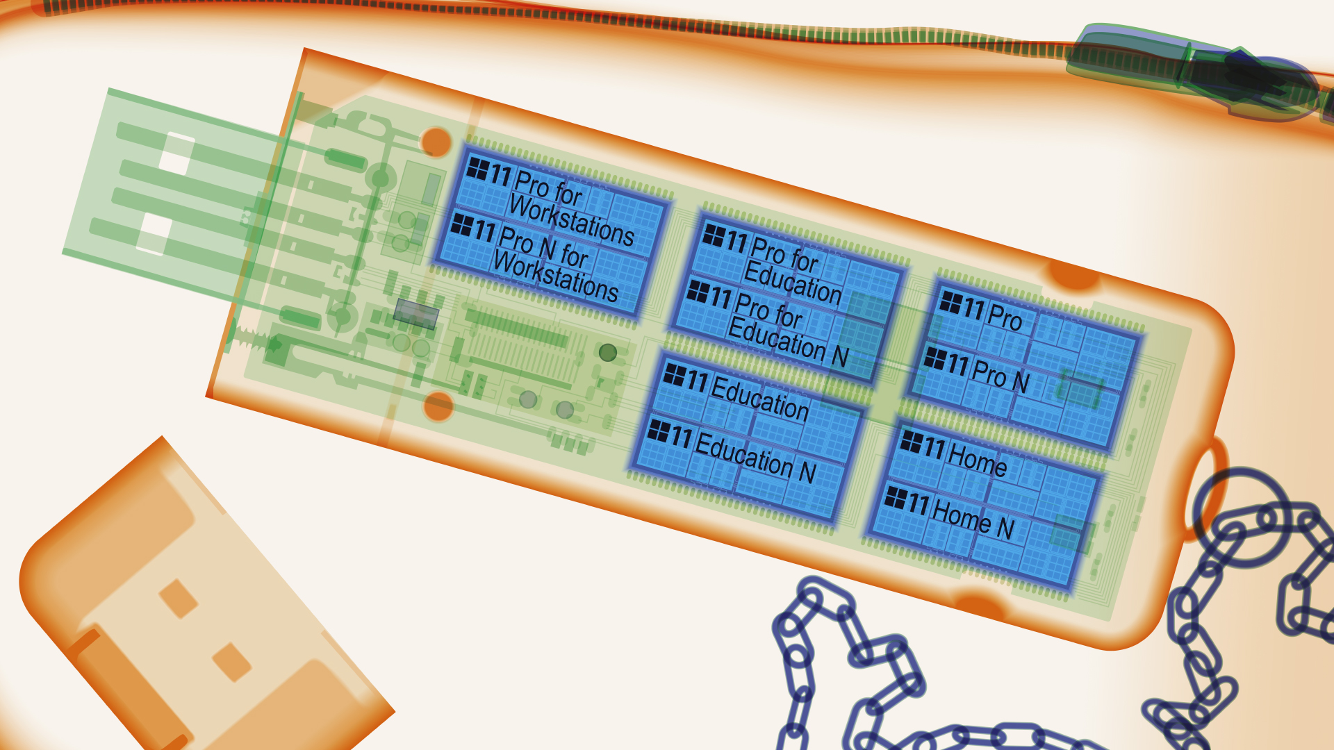 Das Installieren von Windows läuft nach dem immer gleichen Schema ab. In Kurzform: Nach dem Booten vom Installationsmedium entpackt das Setup-Programm ein Abbild einer frischen Windows-Installation (Image) auf den internen Datenträger und versorgt ihn mit einem Bootloader – fertig. Bei dem Installationsmedium kann es sich beispielsweise um einen von Microsofts kostenlosem „Media Creation Tool“ (siehe ct.de/y7rr) konfigurierten USB-Stick handeln oder um ein ISO-Abbild. Der Haken: Sobald mehrere Sticks oder ISOs vorhanden sind, geht schnell der Überblick verloren. Von welchem Stick ließ sich Windows 10, von welchem Windows 11 und von welchem Windows Server installieren? Welche Editionen (Home, Pro, Enterprise …) stehen jeweils zur Auswahl? Das können Sie weder Sticks noch ISOs von außen ansehen, ein Blick darauf mit dem Explorer hilft ebenfalls nicht weiter. Abhilfe könnte schaffen, Sticks mit passend beschrifteten Aufklebern zu versehen und ISOs sprechend zu benennen – doch wer macht das schon konsequent? Und was ist mit Sticks und ISOs, die Sie beispielsweise von Kollegen erhalten?
