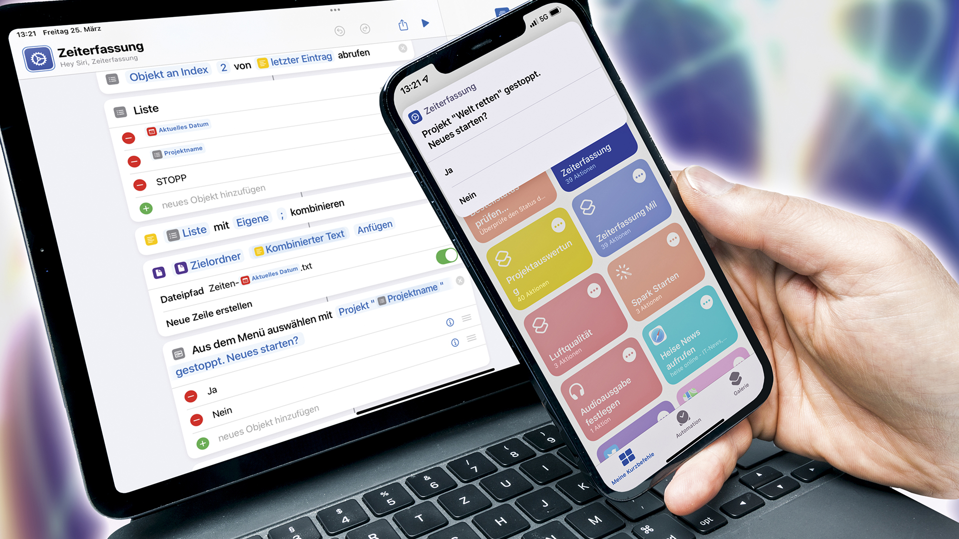 Das modulare Automatisierungswerkzeug „Kurzbefehle“ ist auf iPhones, iPads und seit macOS 12 auch auf Macs zu Hause. Seit der Einführung ist es noch mächtiger geworden, was wir als Praxisprojekt am Beispiel einer Zeiterfassung zeigen.