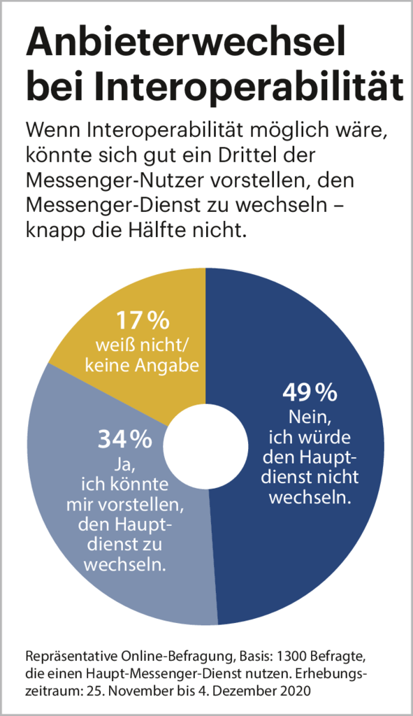 Nicht nur aus diesem Grund winkt Blatter ab. Er sieht generell keinen Vorteil in der Regelung. Von der dahinterstehenden These, dass WhatsApp-Nutzer eher zu Threema wechseln, wenn sie von dort aus ihre WhatsApp-Community weiter erreichen können, hält er nichts: „Wenn überzeugte WhatsApp-Nutzer mit Threema-Nutzern kommunizieren könnten, würden diese kaum noch die Threema-App kaufen, um in Kontakt zu bleiben. Das würde die dominierende Marktposition von WhatsApp eher stärken als schwächen.“