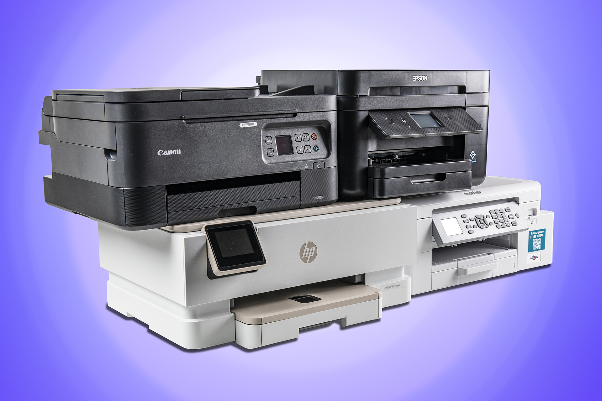 Wenn ich die Bilder dieser Drucker anschaue, dann fühle ich mich wie in die tiefsten 80er versetzt. Bei diesen Designs bekomme ich mehr als nur Kopfweh. Ganz zu schweigen davon, dass diese Geräte zum Teil mehr Platz brauchen als mein alter silberner Canon MP640, der seit 2011 klaglos seine Aufgaben verrichtet: Braucht wenig Platz, sieht sehr elegant aus und das Display zum Navigieren ist auch groß genug.