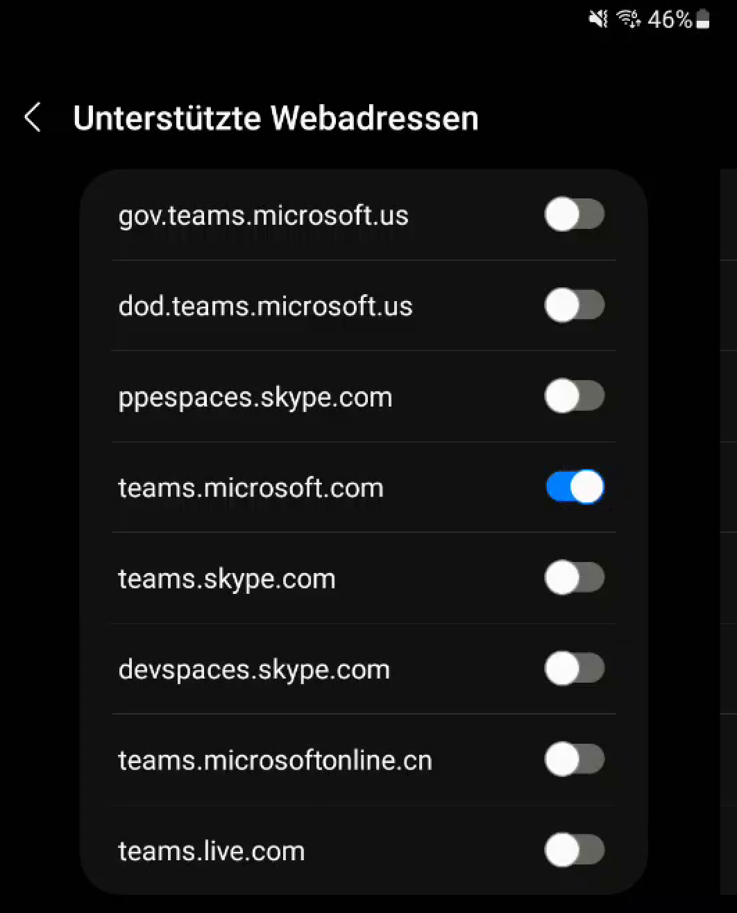 Android-Apps können registrieren, für welche Inhalte und URLs sie sich zuständig fühlen. Beim Öffnen von URLs geht Android die Liste durch und zeigt ein Auswahlmenü an, falls mehrere Apps behaupten, mit der URL umgehen zu können. In diesem Menü wählen Sie auch die Standardanwendung aus. Der Browser fühlt sich für beliebige URLs zuständig. Wenn er sich direkt öffnet, fehlt die Registrierung der Teams-App für diese URL.