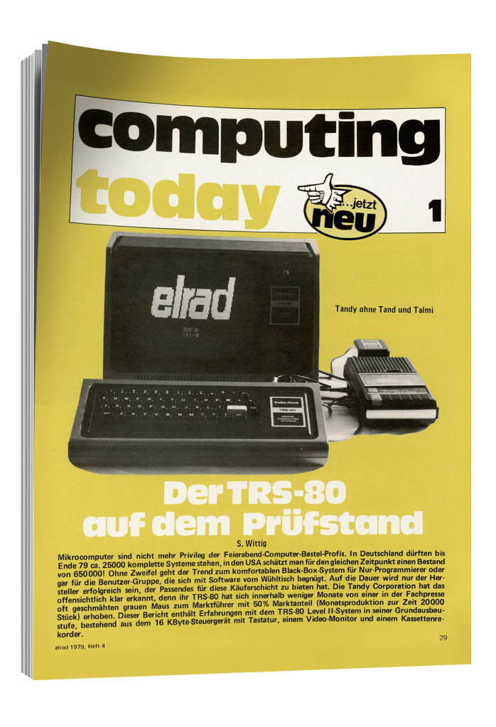 Nach und nach mischten sich immer mehr Digitaltechnik und Berichte über Computermessen unter die Verstärker, Effektgeräte und Multimeter. Im Aprilheft 1979 erschien dann erstmals der Sonderteil „computing today“, mit gelben Seiten optisch vom Rest des Hefts abgehoben. In der Erstausgabe präsentierte der Autor S. Wittig den im Vorjahr in den USA erschienenen Tandy TRS-80, der zusammen mit dem Apple II und dem Commodore PET zu den ersten bezahlbaren Komplettrechnern mit Monitor, alphanumerischer Tastatur und Kassettenrecorder als Programmspeicher gehörte: