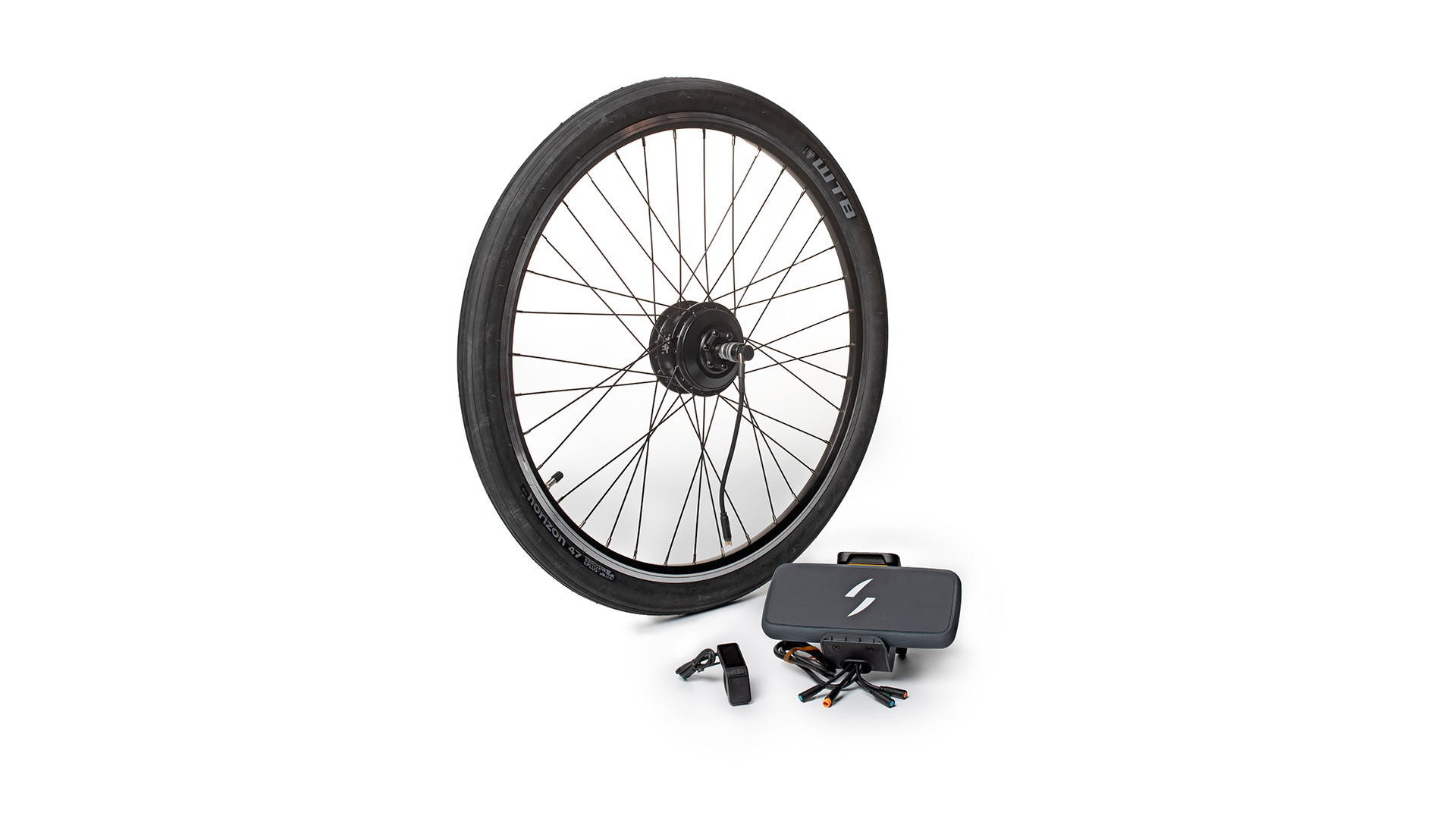 Das eigene Rad zum E-Bike machen: Die Idee ist nicht neu, doch mit dem Umrüstkit von Swytch lässt sie sich besonders einfach umsetzen. Den Umbau erledigen selbst Laien im Handumdrehen, denn der Motor sitzt in einem Vorderrad, das das bisherige Vorderrad ersetzt. Anders als ein Nachrüstmittelmotor, wie zum Beispiel der von Pendix [1], erfordert das keinen komplizierten Eingriff samt Austausch des Tretlagers und kostet auch nicht weit über 1000 Euro. Zum Testzeitpunkt war das Swytch-Kit ab 450 Euro erhältlich, wenn man bereit war, anderthalb Monate Wartezeit in Kauf zu nehmen. Sofort versandfertige Kits kosteten 100 Euro mehr. Allerdings schwankt der Preis je nach Verfügbarkeit immer mal ein wenig.