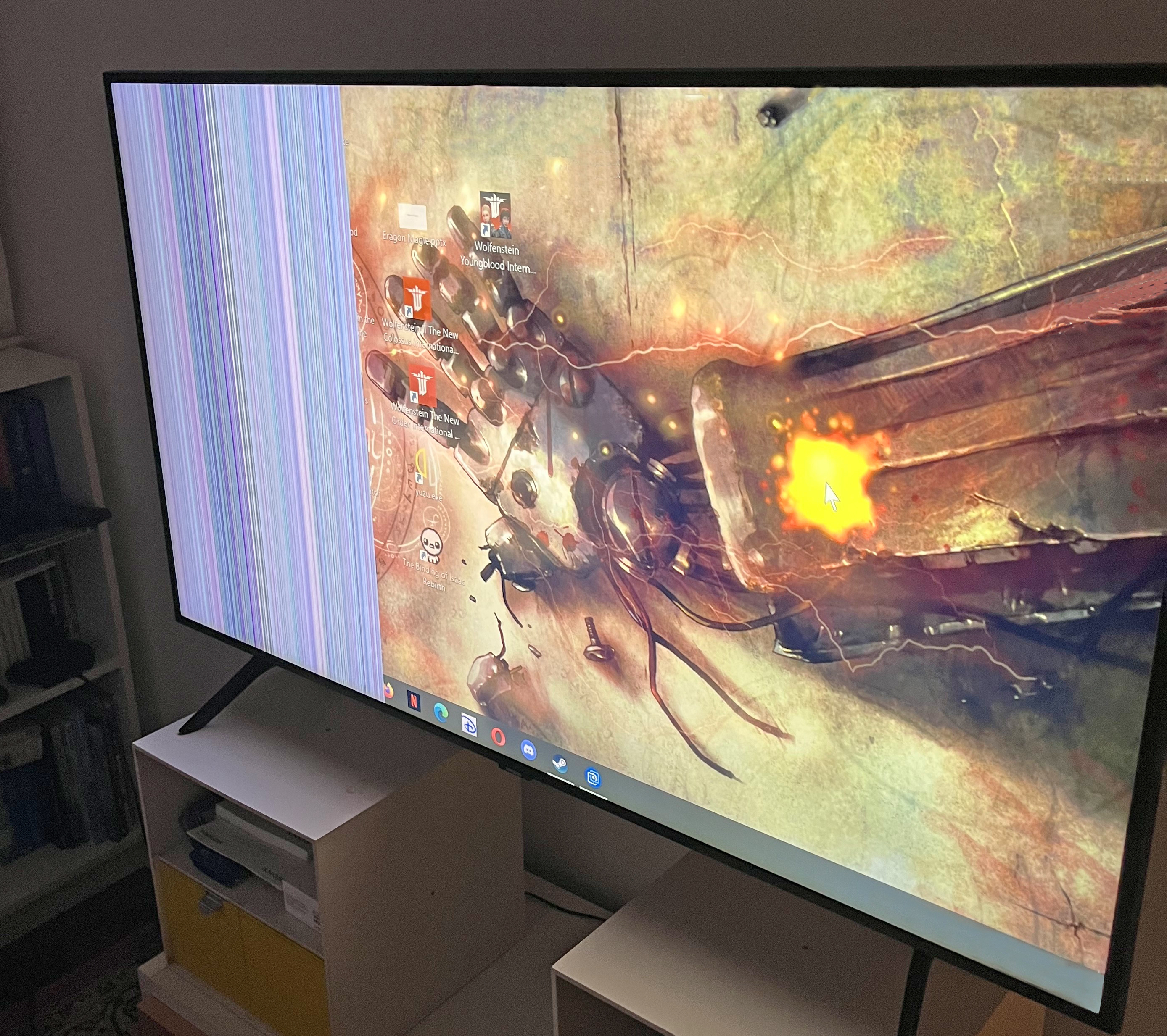 Das Samsung-TV zeigt auf einer Seite bunte Störstreifen statt des gewünschten Inhalts.