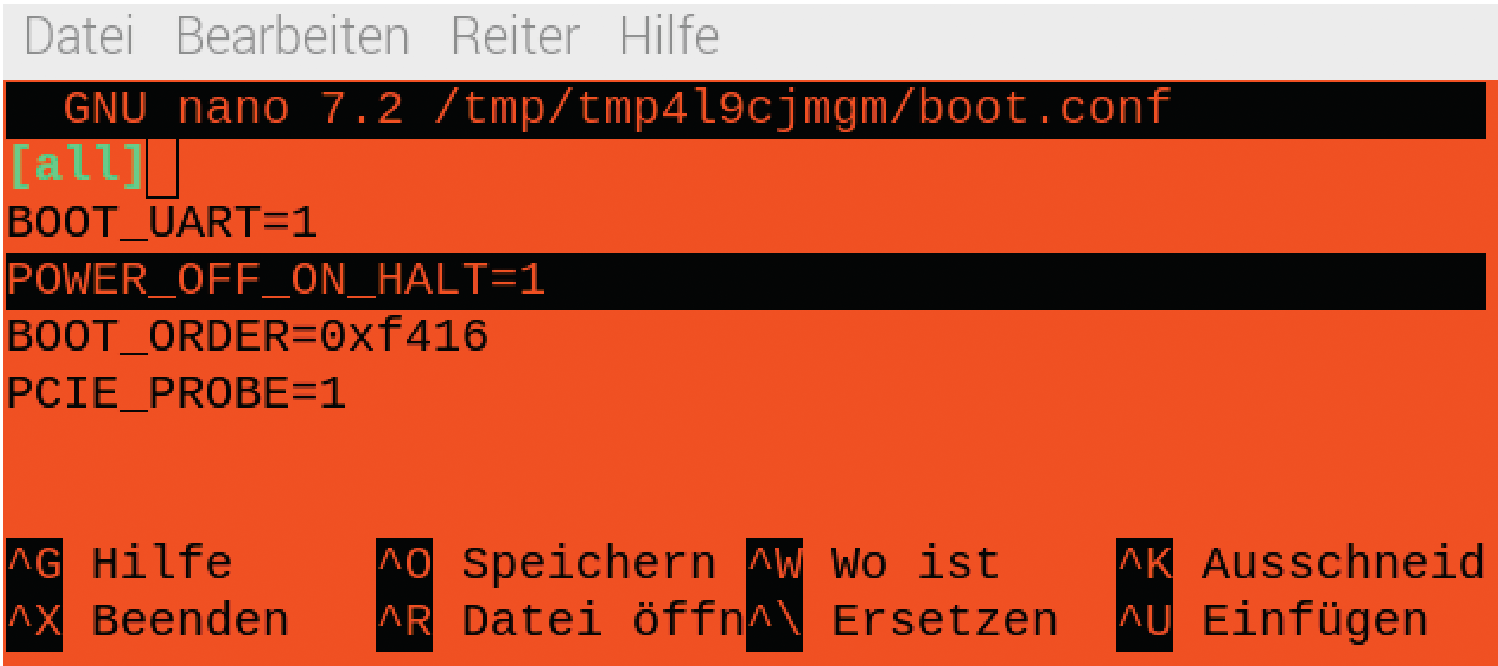 Ja. Dazu müssen Sie bloß die Konfigurationsdatei für das EEPROM ändern. Bevor Sie das tun, sollten Sie sicherstellen, dass Sie die neueste Version auf Ihrem Raspi 5 haben. Dazu machen Sie ein Softwareupdate und starten dann neu: