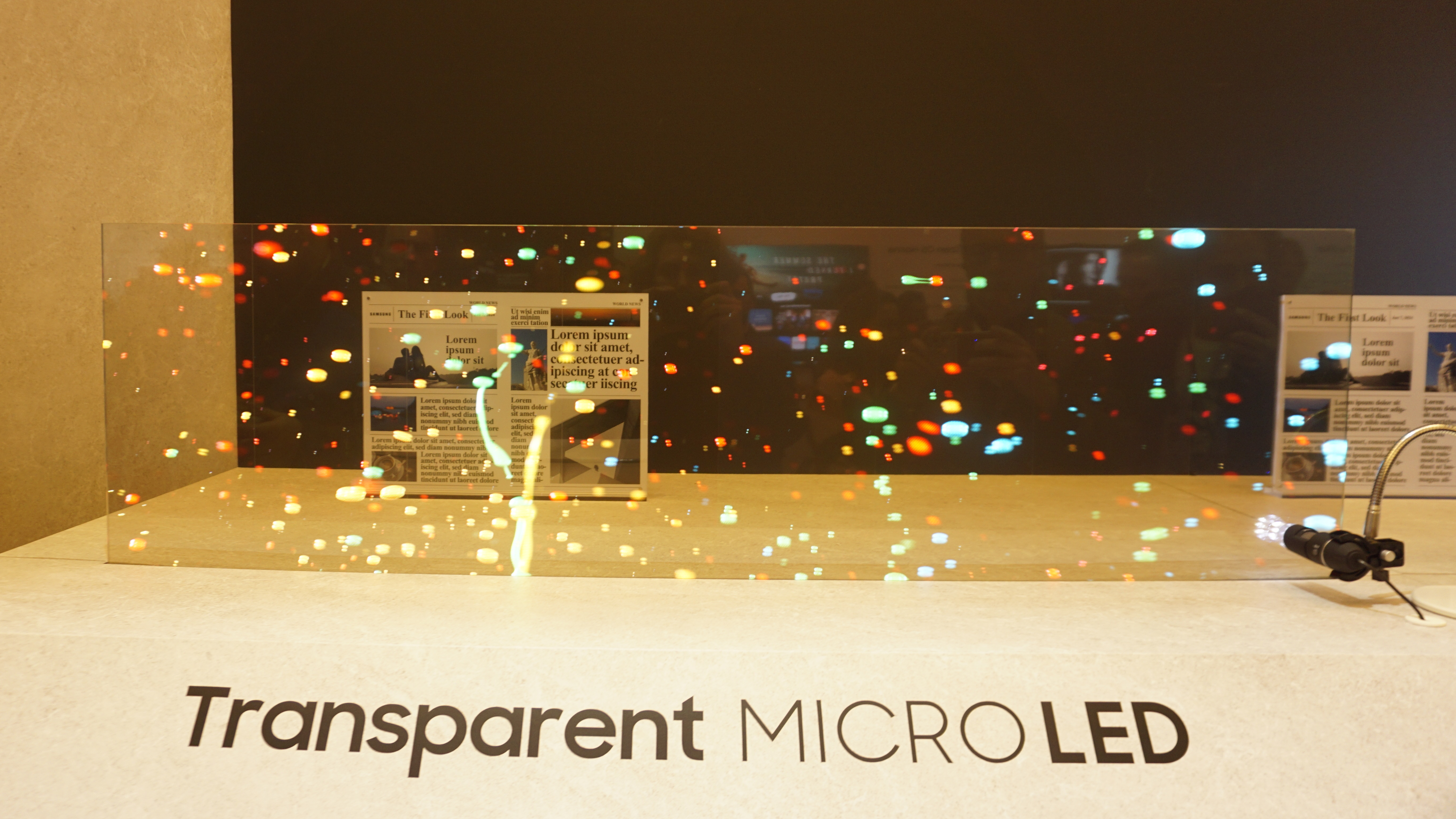 Samsung rückte auf der CES einen Vorteil von LED-Displays in den Fokus, nämlich ihre mögliche Transparenz. Weil die Leuchtdioden derart klein sind, bedecken sie kaum Fläche auf dem Substrat, die LED-Displays erreichen deshalb laut Samsung eine Transparenz von 98 Prozent; OLEDs bleiben demnach unter 60.