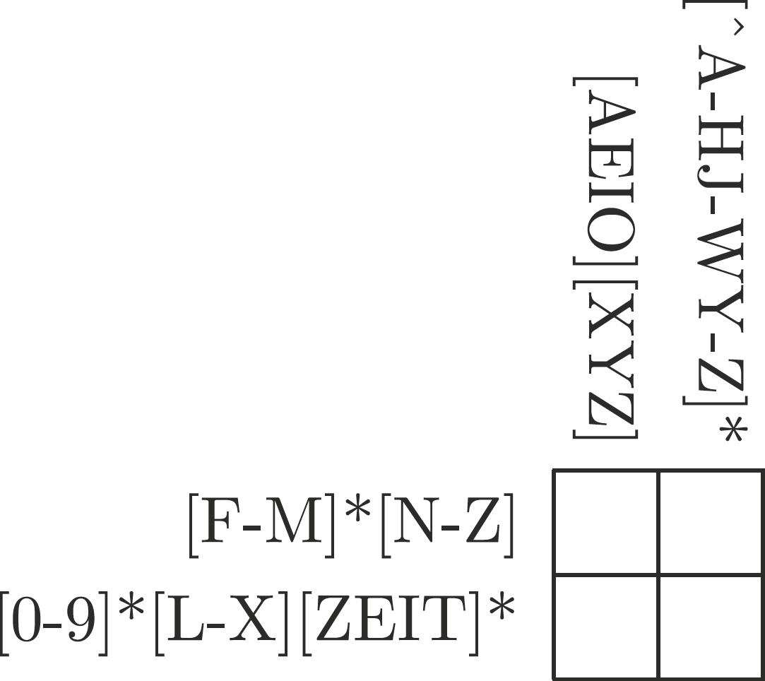 In den meisten Unix-Programmen lassen sich reguläre Ausdrücke einsetzen, um Zeichenketten anhand allgemeiner Muster zu finden. Für Uneingeweihte erscheinen diese ähnlich kryptisch wie vim-Befehle. d[er|ie|as] etwa liefert Treffer bei jedem Vorkommen von „der“, „die“ oder „das“. Die Grundsätze lassen sich erlernen und dann perfektionieren mit den Regex-Crosswords. Dabei handelt es sich um Gitter, deren Zeilen und Spalten mit regulären Ausdrücken beschriftet sind (siehe Abbildung). Die Felder müssen mit Buchstaben befüllt werden, die allen äußeren Bedingungen genügen. Vorgefertigt sind Rätsel in zehn Kategorien: unterschiedliche Schwierigkeitsgrade, aber auch Sonderformen wie Palindrome, Hamlet-Zitate oder Städtenamen. Wer selbst auf der anderen Seite des Pults stehen will, kann eigene Rätsel erstellen und auf der Website hochladen. Der eingebaute Editor gibt Auskunft über die Machbarkeit und Vieldeutigkeit des erstellten Rätsels – so entstand das Beispiel in der Abbildung für die Leser der iX. (jab)