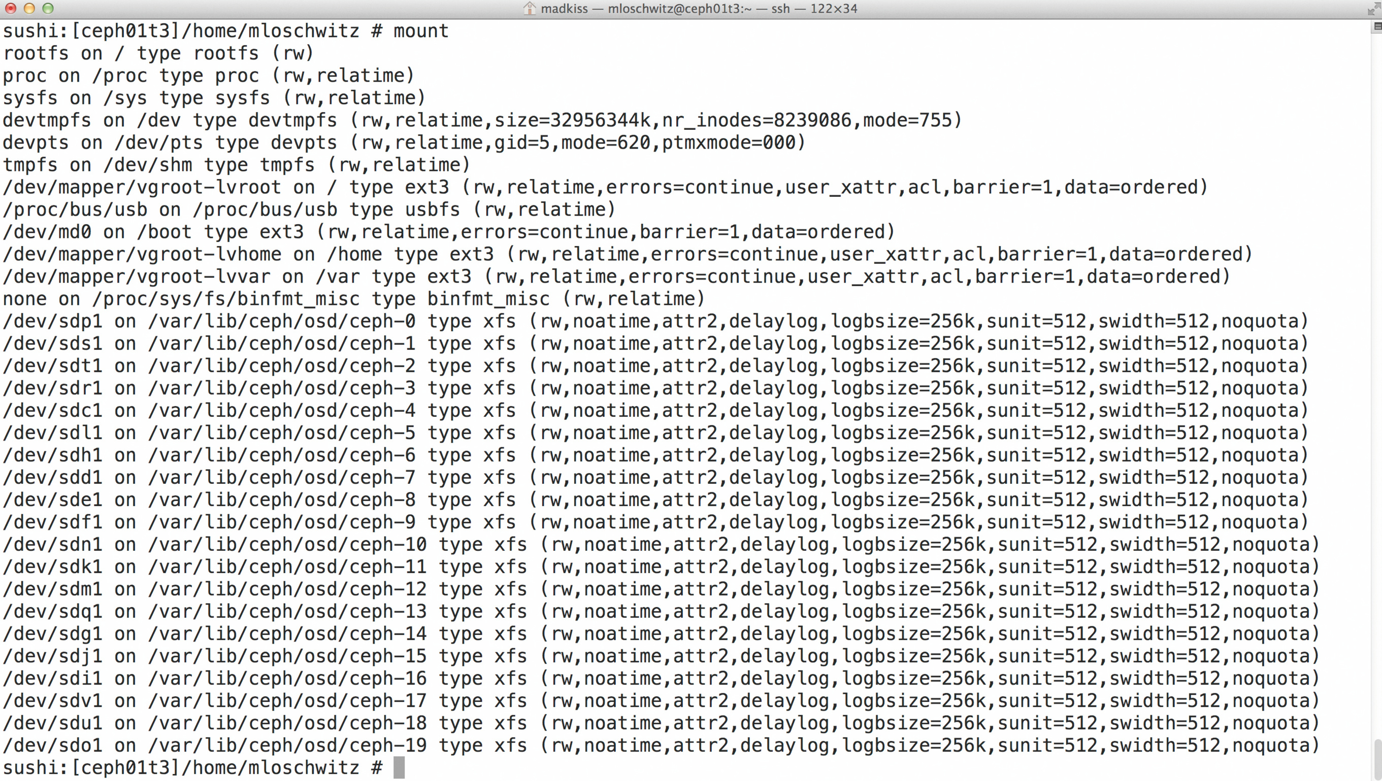 Ab Werk lassen sich auf diesen Daten bekanntlich gar nicht strukturiert ablegen. Der OSD-Daemon von Ceph könnte seine Objekte zwar auf eine Platte schreiben; er könnte aber ohne eine wie auch immer geartete Protokollierung anschließend nicht zielgerichtet auf diese zugreifen. Um die zu einer bestimmten Placement-Gruppe gehörenden binären Objekte zu finden, müsste er stattdessen den Datenträger durchsuchen. Weil dabei unmöglich die bei modernen Storages benötigte Performance zu erreichen ist, hat sich XFS quasi als Standarddateisystem für OSDs etabliert (siehe Abbildung 1 und 2).