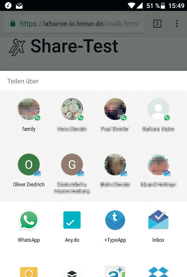 Chrome 61 mit JavaScript-Modulen Chrome für Android ermöglicht Webseiten den Zugriff auf die systemweite Teilen-Funktion.
