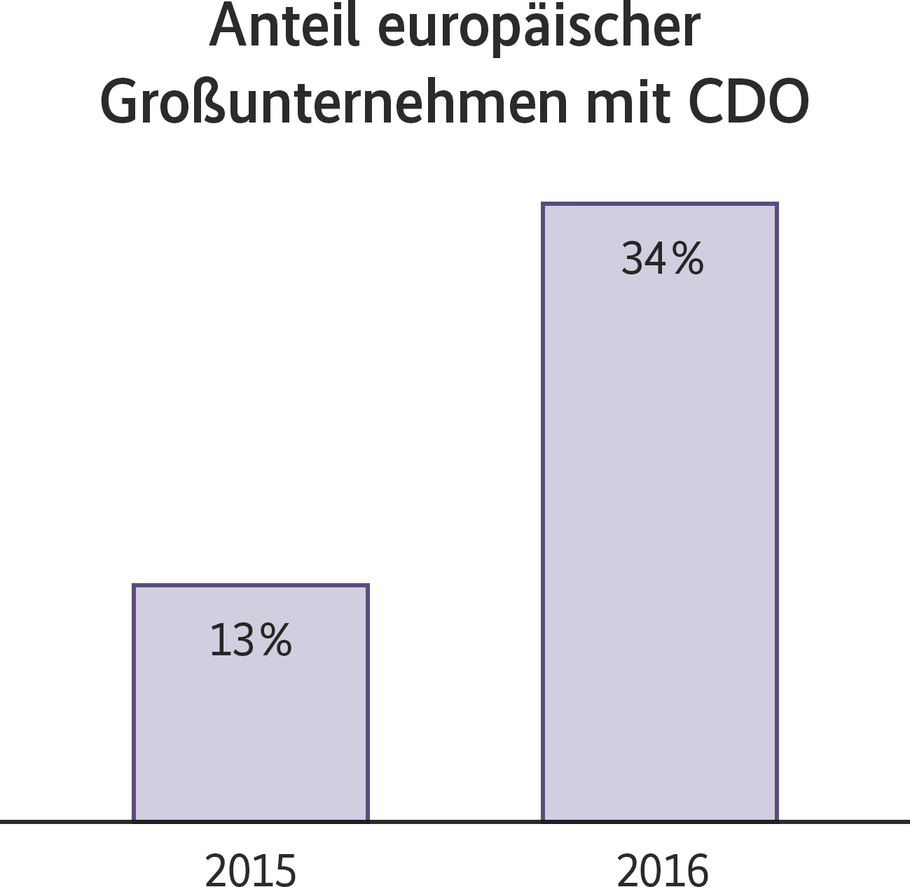 Es sind eher Unternehmen mit größerem Börsenwert, die einen CDO beschäftigen, als mittelgroße Unternehmen. Tatsächlich drehen sich die meisten CDO-Diskussionen um Konzerne, mittelständische Unternehmen sind unterrepräsentiert – eine Lücke, die wir hier zu schließen versuchen.