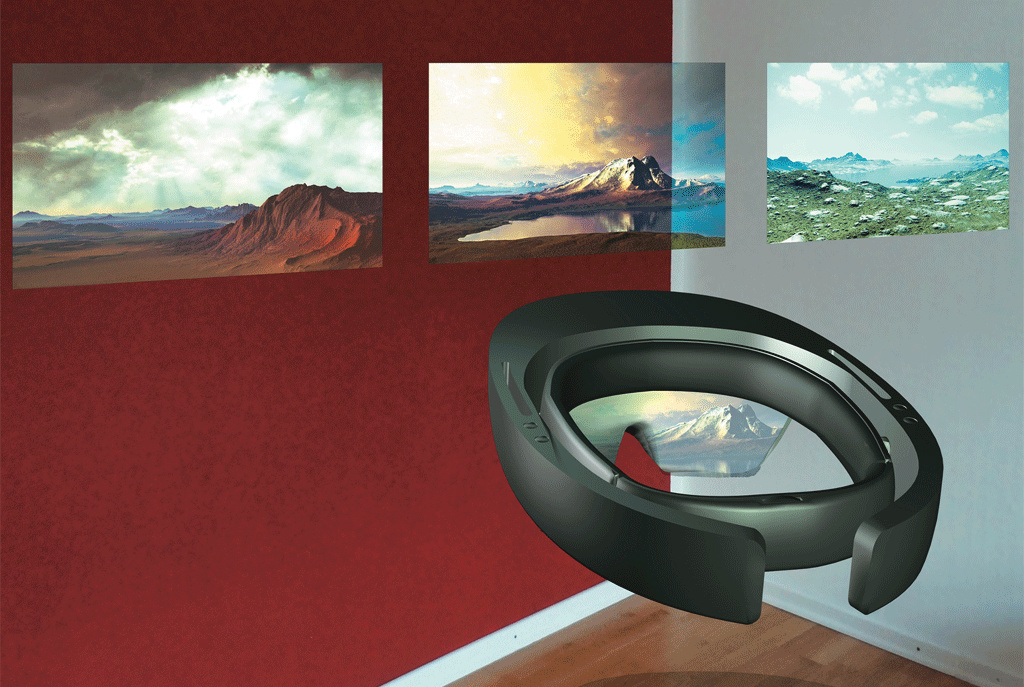 Die Augmented-Reality-Technik (AR) der HoloLens unterscheidet sich grundlegend von derjenigen der verbreiteten Virtual-Reality-Headsets (VR): VR-Brillen benötigen einen Desktop-PC oder ein anderes zusätzliches Gerät und generieren eine künstliche Welt, in die der Nutzer abtaucht (siehe die Marktübersicht auf S. 48). HoloLens-Anwender hingegen sehen weiterhin ihre reale Umgebung, ergänzt um 3D-Projektionen.