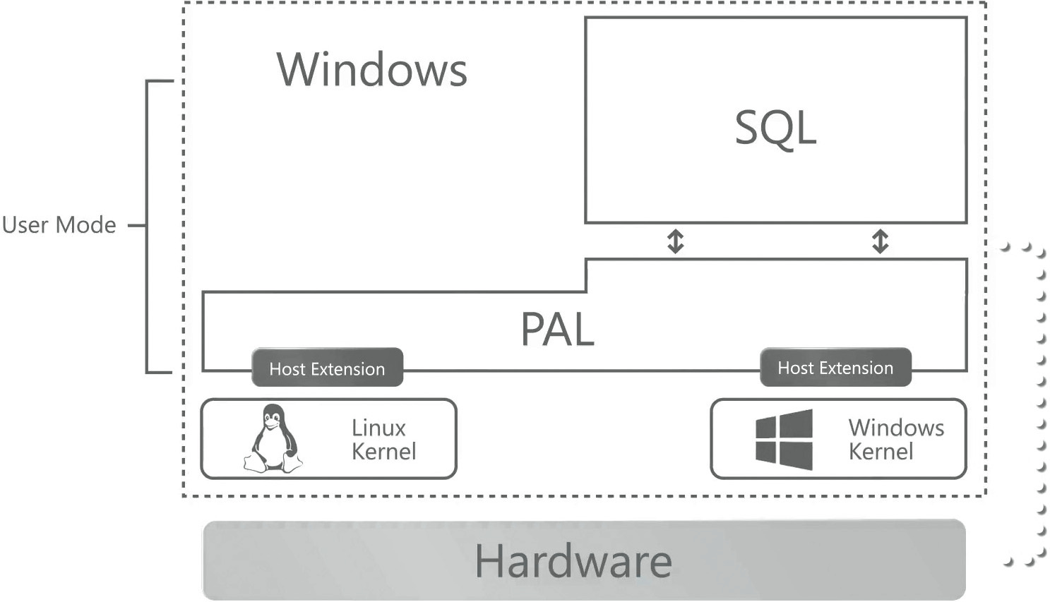 SQL Server 2017 mit Linux-Variante Statt SQL Server zu portieren, entwickelte Microsoft die SQL Platform Abstraction Layer, um seine Datenbank per Host Extension wahlweise unter Windows und Linux laufen zu lassen. Quelle: Microsoft
