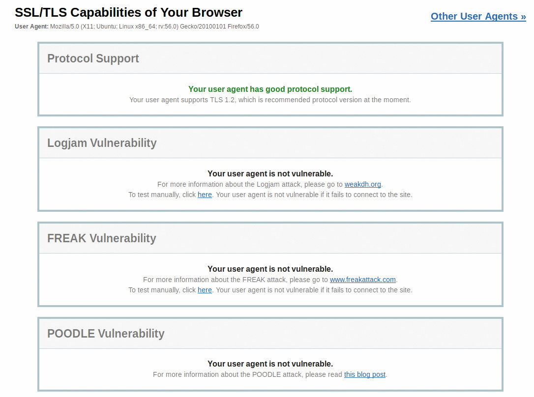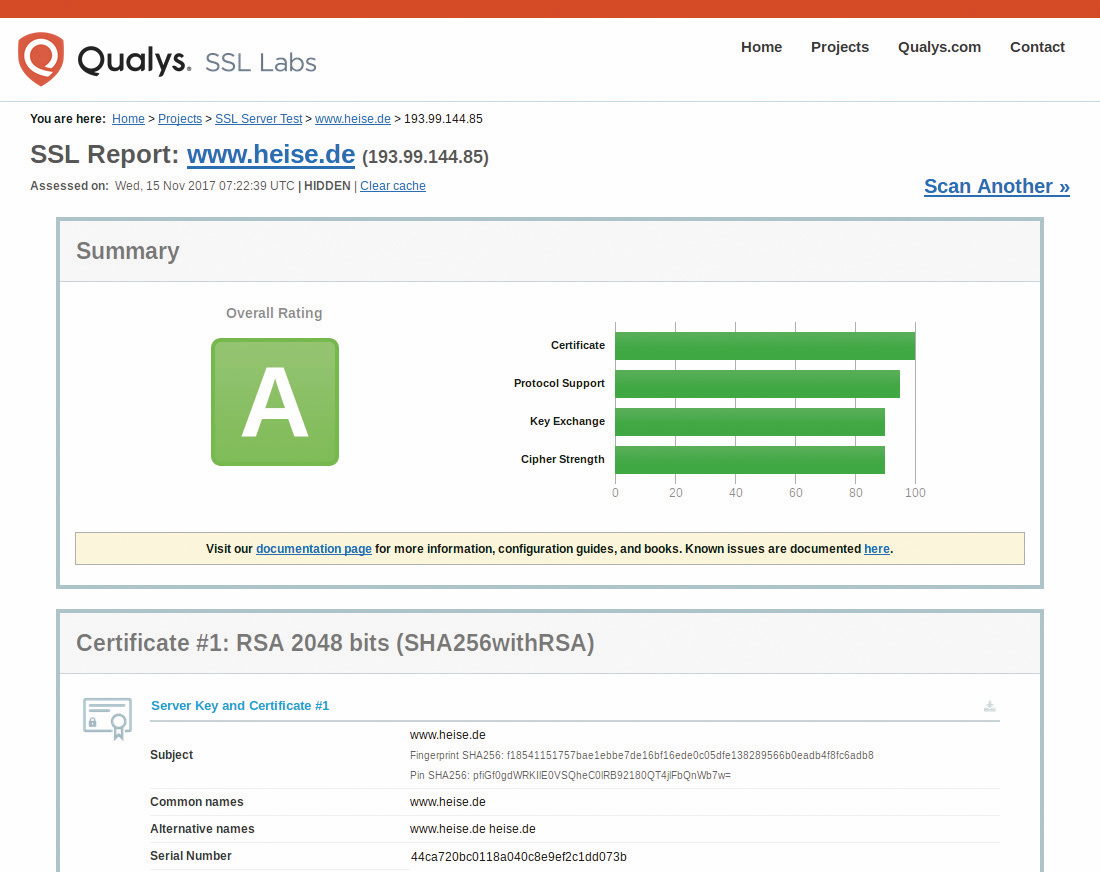 Doch alles der Reihe nach, zunächst ein paar Grundlagen: Hängt am in der Anwendungsschicht des IP-Stacks angesiedelten HTTP ein S für „secure“, resultiert diese Sicherheit aus einem im Schichtenmodell eine Ebene tiefer beheimateten Protokoll: TLS – Transport Layer Security. TLS liegt derzeit in Version 1.2 vor und ist im RFC5246 spezifiziert (siehe ix.de/ix1801064, dort sind auch eine Reihe weiterer Onlinequellen und Hintergrundinformationen zu finden). Von der Nachfolgeversion 1.3 existiert bereits ein Entwurf, der voraussichtlich 2018 verabschiedet wird. TLS ist der Erbe des von Netscape entwickelten Secure Socket Layer (SSL). TLS in Version 1.0 gilt auch als SSL-Version 3.1, ist unsicher und sollte nicht mehr zum Einsatz kommen.