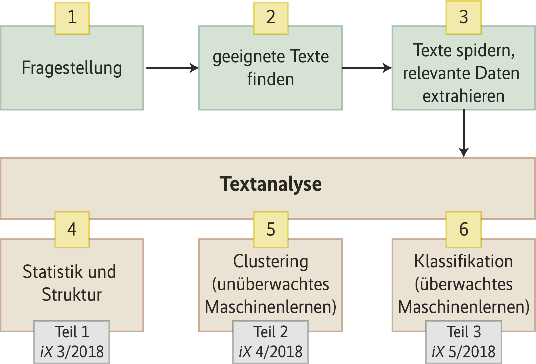 Der erste Teil des Tutorials erklärt, wie man aus den Texten Statistiken und Informationen zur Struktur der Texte ableitet und welche Werkzeuge dazu nötig sind. Im nächsten Heft werden die Texte mithilfe von unüberwachtem Machine Learning geclustert. Thema des dritten Teils dieses Tutorials ist eine Textklassifikation mithilfe von überwachtem Machine Learning.