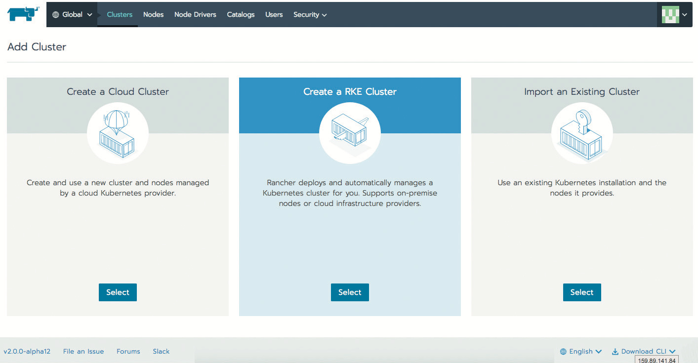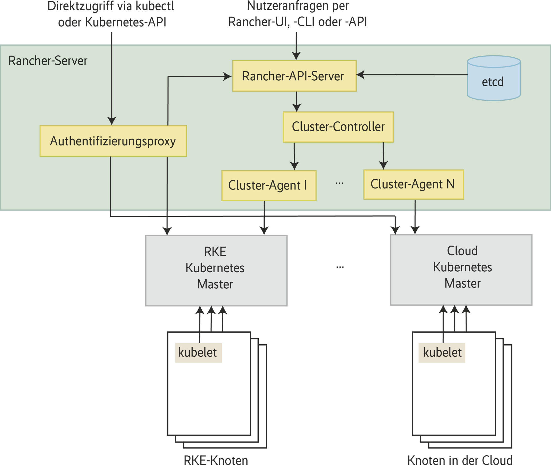 Bei RKE handelt es sich um ein Kommandozeilentool, das Kubernetes-Cluster automatisiert bei Cloud-Providern wie Google, Amazon Web Services (AWS), Azure oder Alibaba aufsetzt. Bisher gab es dafür verschiedene Installer wie Kops oder Kubespray, die allerdings meist nur eine Cloud ansprechen. Das war den Rancher-Entwicklern, insbesondere vor dem Hintergrund zunehmender Multi-Cloud-Szenarien, zu wenig. Mit RKE geben sie den Nutzern ein Tool an die Hand, das sich mit nahezu jedem Anbieter verwenden lässt. Die Möglichkeit, ganze Kubernetes-Cluster und nicht nur einzelne Hosts oder Pods einzurichten, wird vorerst ein Alleinstellungsmerkmal von Rancher 2.0 sein. Bisher gibt es keinen anderen Dienst mit einer solchen Funktion. Es wird aber voraussichtlich nur eine Frage der Zeit sein, bis andere Anbieter hier nachziehen.