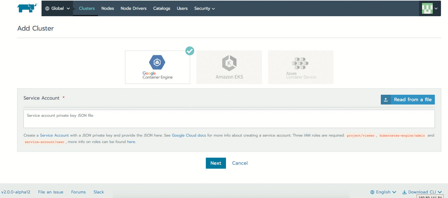 Der eingebettete Kubernetes-Master erlaubt Setup und Betrieb von Kubernetes-Clustern. Das bringt Rancher einige Vorteile, die sich direkt in Form neuer Funktionen bemerkbar machen: Plug-ins für Infrastruktur wie Storage, Netzwerk und Load Balancer, feiner justierbare Role-based Access Control (RBAC) und geteilte Host-Umgebungen. Für letztere weist man Kubernetes-Namespaces bei verschiedenen Cloud-Providern Hosts zu, die so ein hybrides Cloud-Setup bilden. Über RBAC ist es dann möglich, Usern nur auf dedizierte Namespaces oder Server Zugriff zu geben. Neben RBAC führt Rancher Pod Security Policies als Security-Funktion ein. Außerdem lassen sich Ökosystemservices wie Istio, Linkerd, Prometheus oder Helm Charts leichter nutzen. Darüber hinaus sollen bald zentrales Logging und Monitoring sowie integrierte Continuous Integration / Continuous Delivery (CI/CD) kommen.