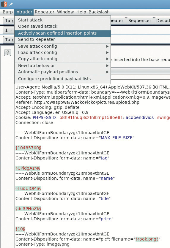 Gibt es Verzeichnisse, für die Directory Browsing möglich ist? Hier kann der Tester erstmals den Proxy aktiv nutzen, also in der Burp Suite das Target-Tool und den Intruder, einen „Fuzzer“. Zunächst erstellt man eine Liste der bisher beobachteten Ressourcen im Scope, indem man die entsprechenden Rohdaten aus dem Target-Tool in eine Textdatei kopiert und die Liste der infrage kommenden Verzeichnisse mit einer geeigneten Kombination aus grep, sed, awk, cut oder gleich Python, Perl oder Ruby extrahiert. Dann dient der Intruder dazu, in einer Anfrage der Art GET / HTTP/1.1 das Verzeichnis / nacheinander durch die Einträge der Liste zu ersetzen. Die Ergebnisse kann man anschließend nach „index of“ durchsuchen, um Fälle von Directory Browsing zu entdecken.